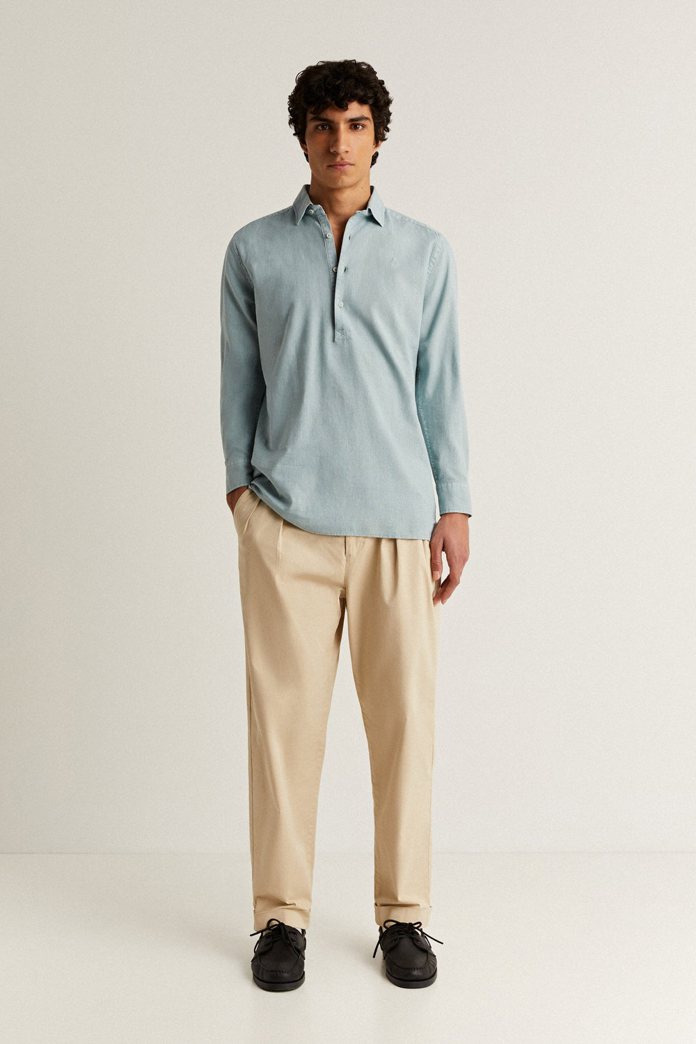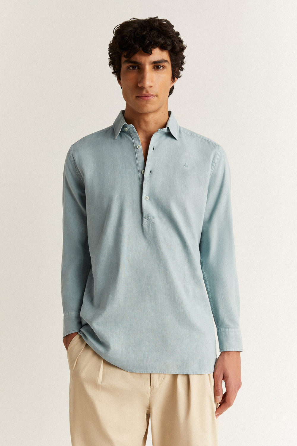 Camisa tipo polo com pormenor de skull bordada no peito no mesmo tom.
