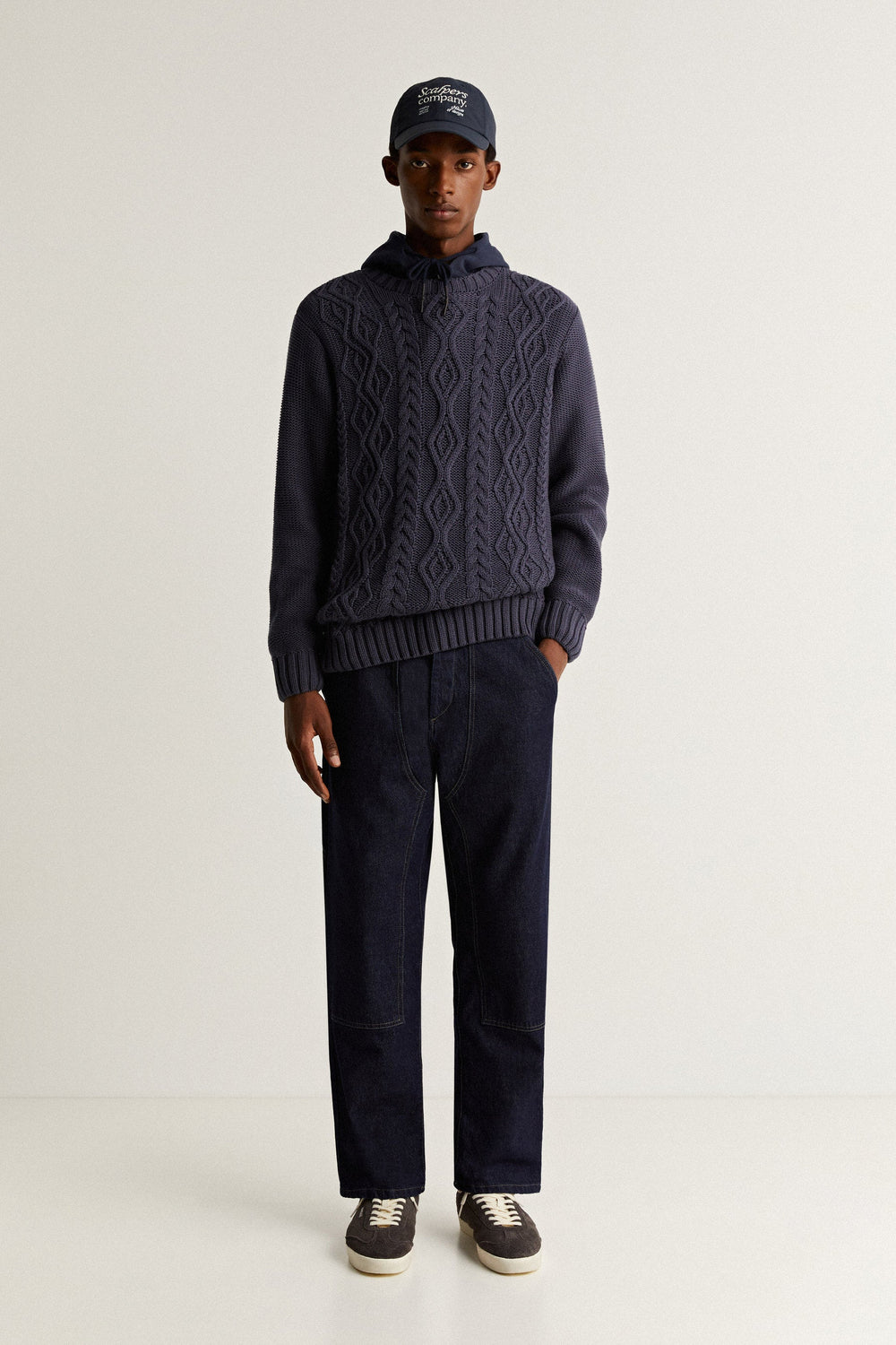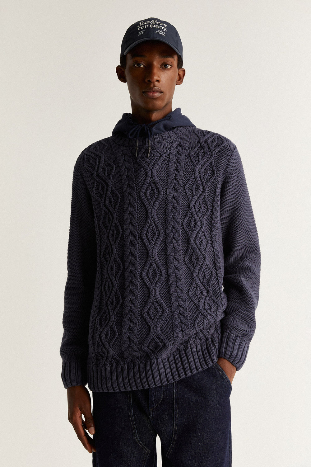 Sweater com pormenor na malha de cabo e tato suave.