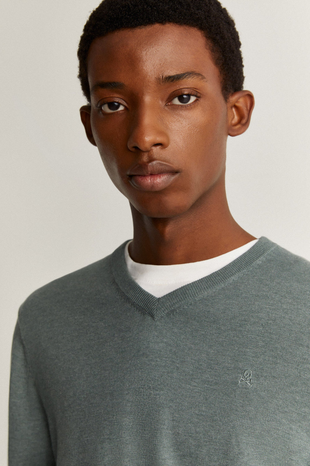 Camisola de malha com pormenor de skull bordada no peito no mesmo tom.