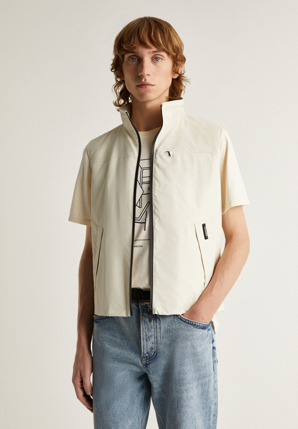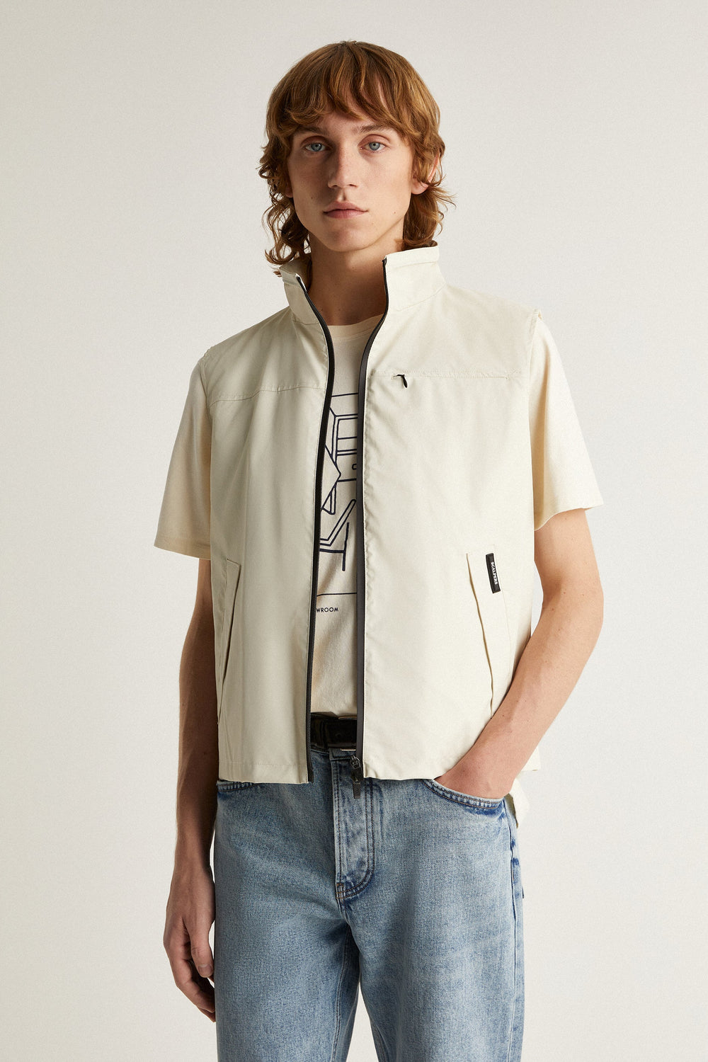 - Bolsos no peito com fecho de correr oculto