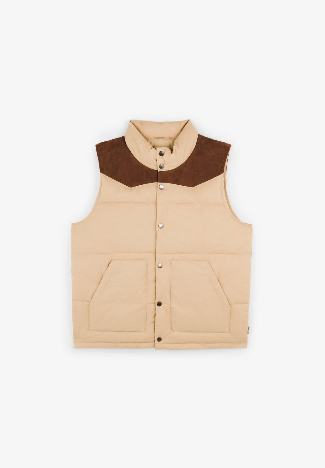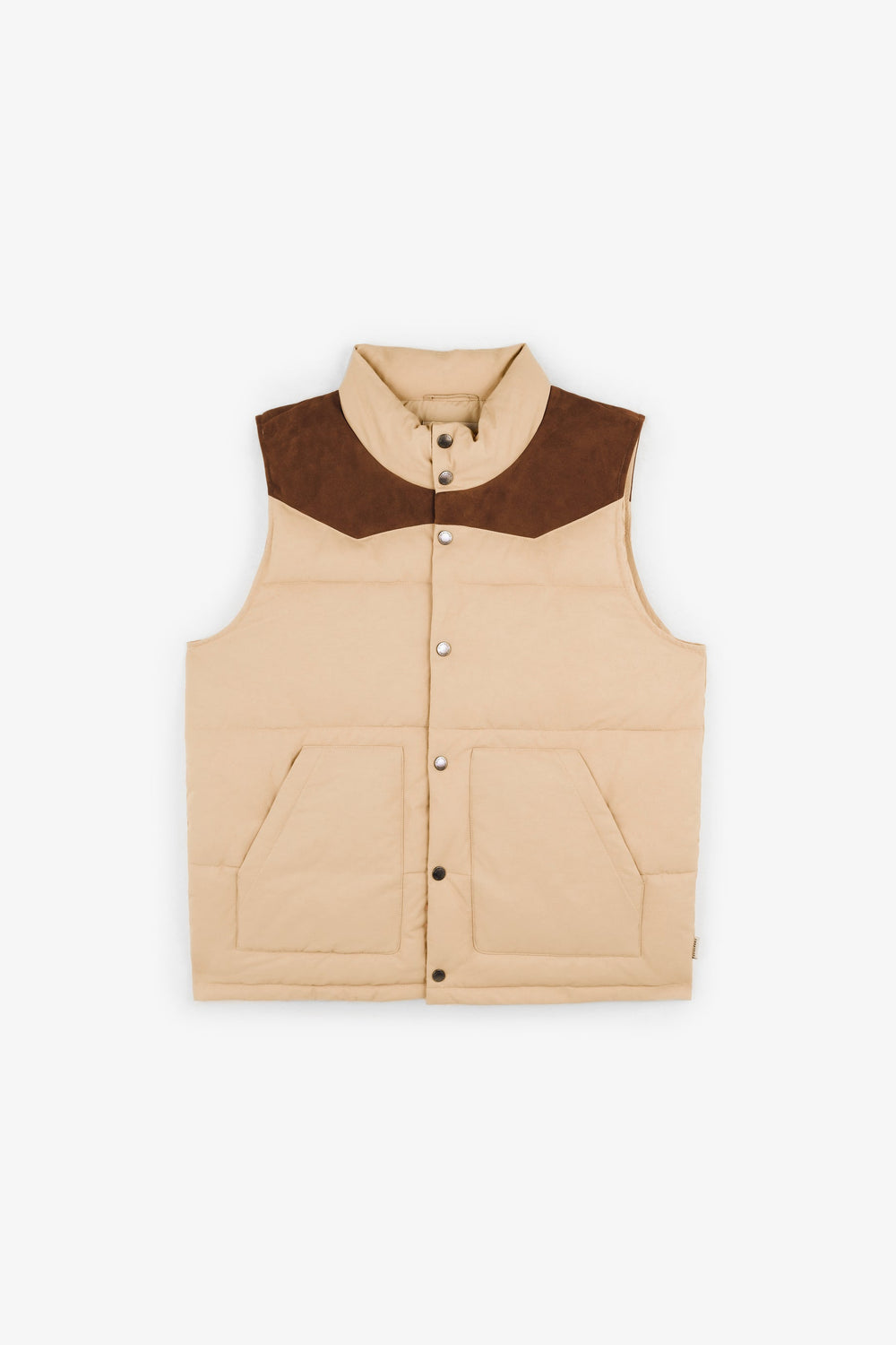 Colete premium acolchoado com pormenor de contraste efeito camurça.