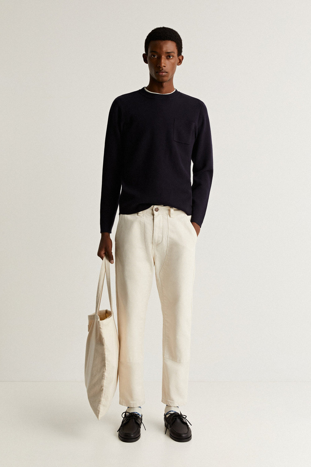- Corte ligeiramente oversize e comprimento pelo tornozelo