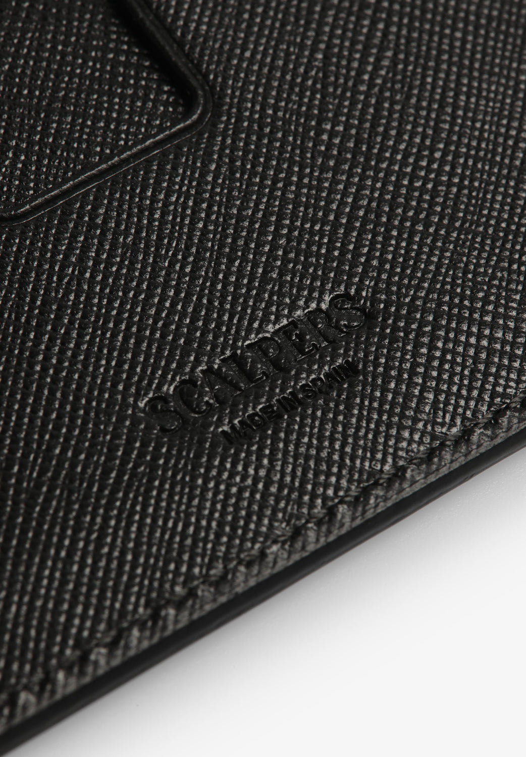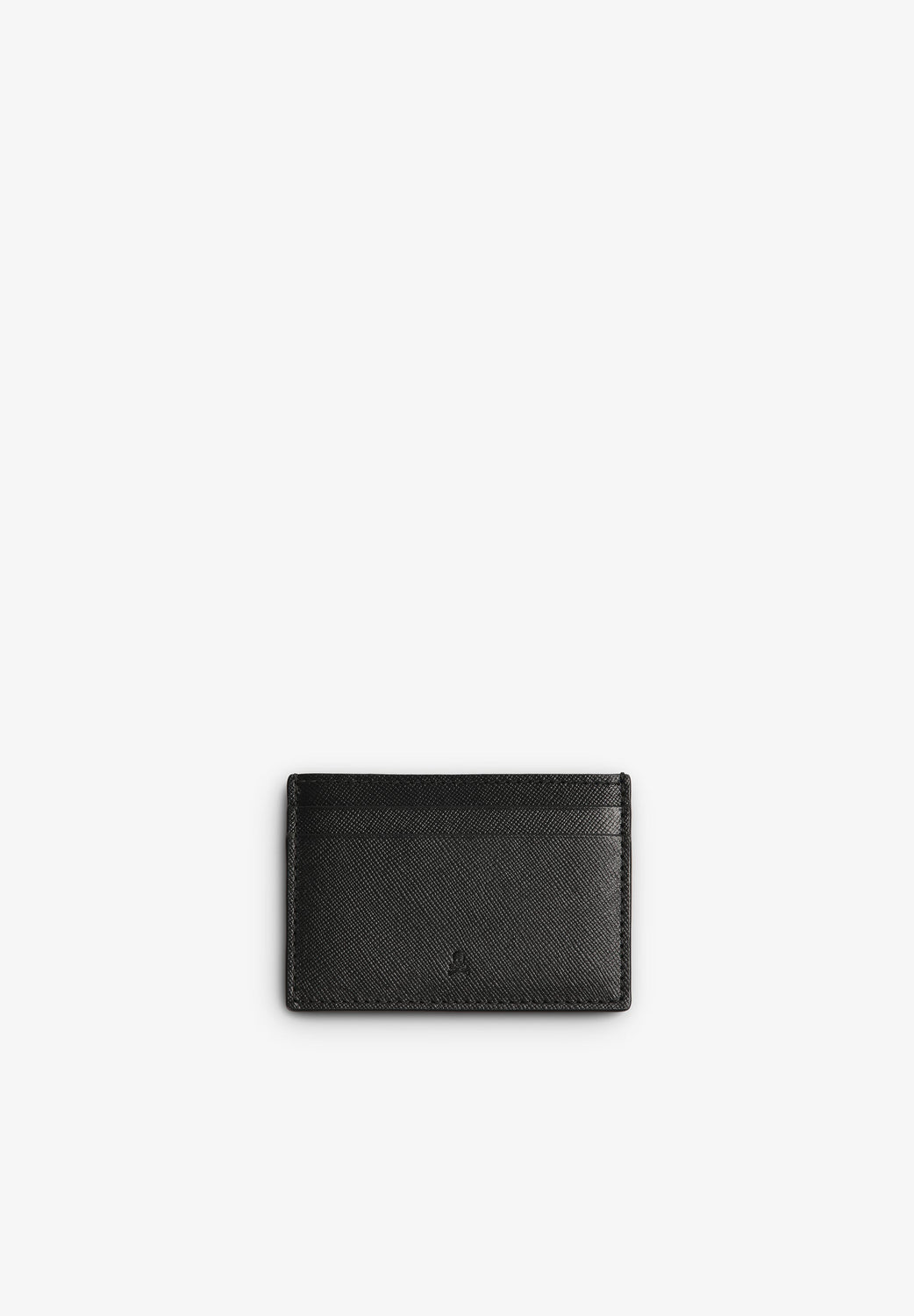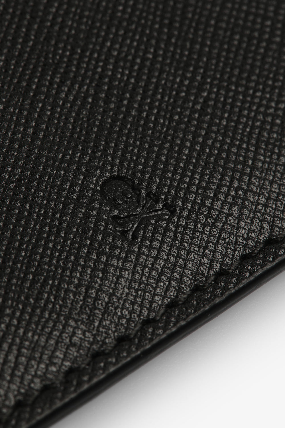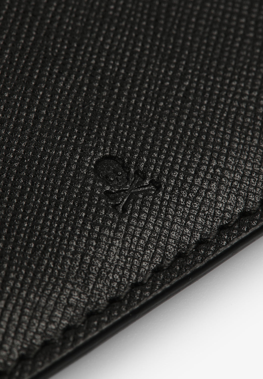 Tarjetero con calavera y logo grabado.