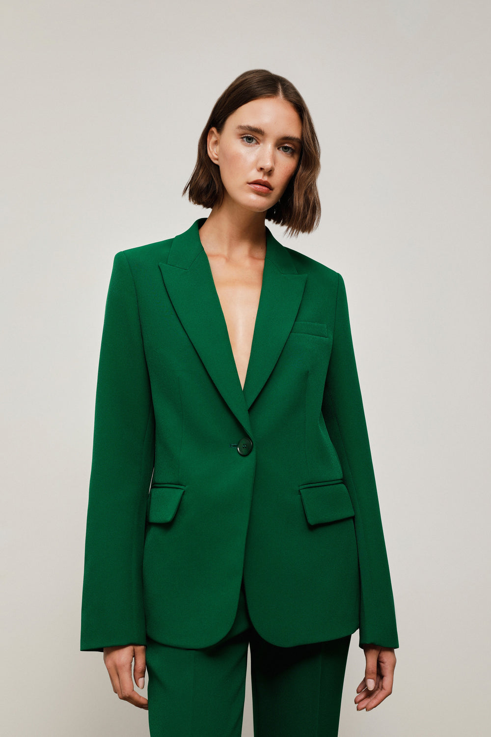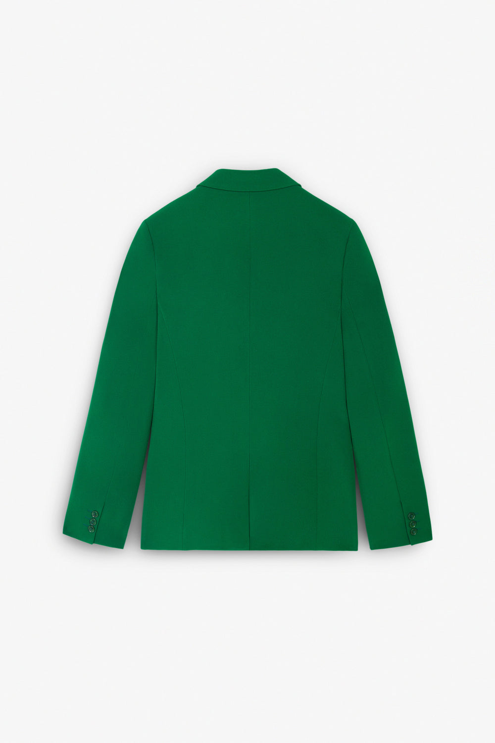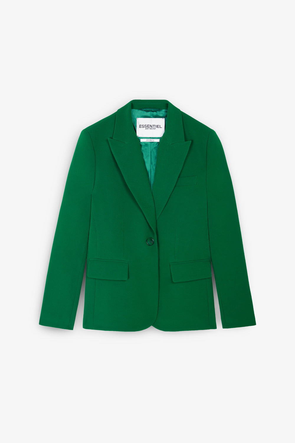 Blazer Essentiel confecionado em tecido de mistura de poliéster e elastano.