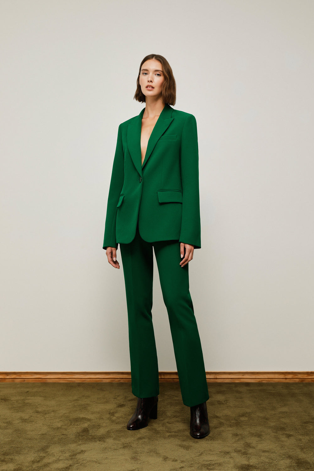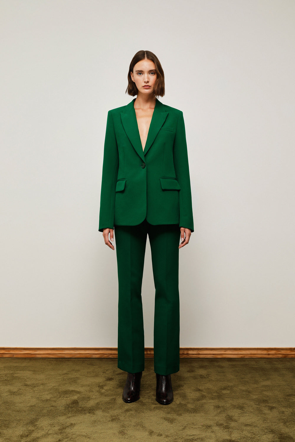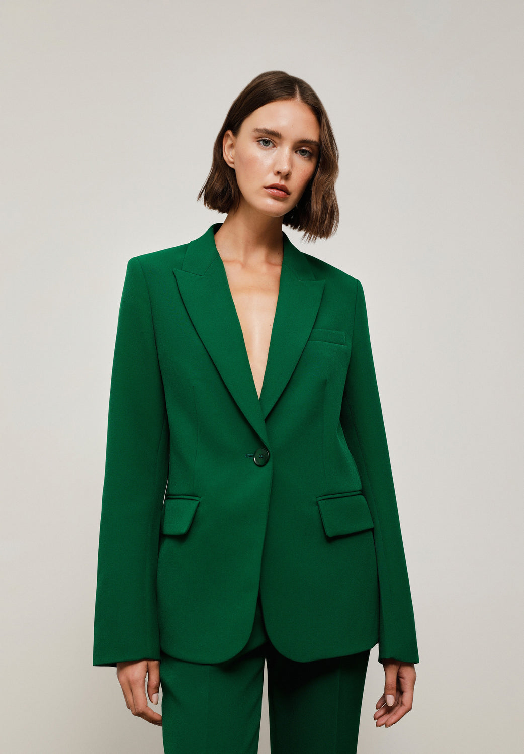 Blazer Essentiel confecionado em tecido de mistura de poliéster e elastano.