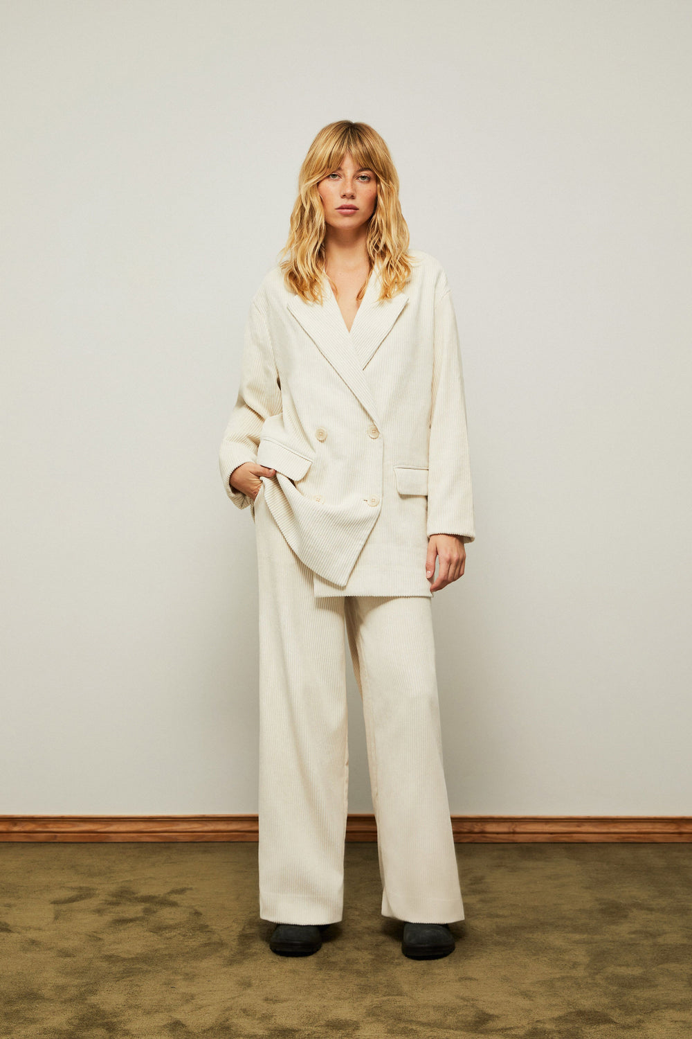 Blazer confecionado em tecido de mistura de poliéster, poliamida e poliuretano.