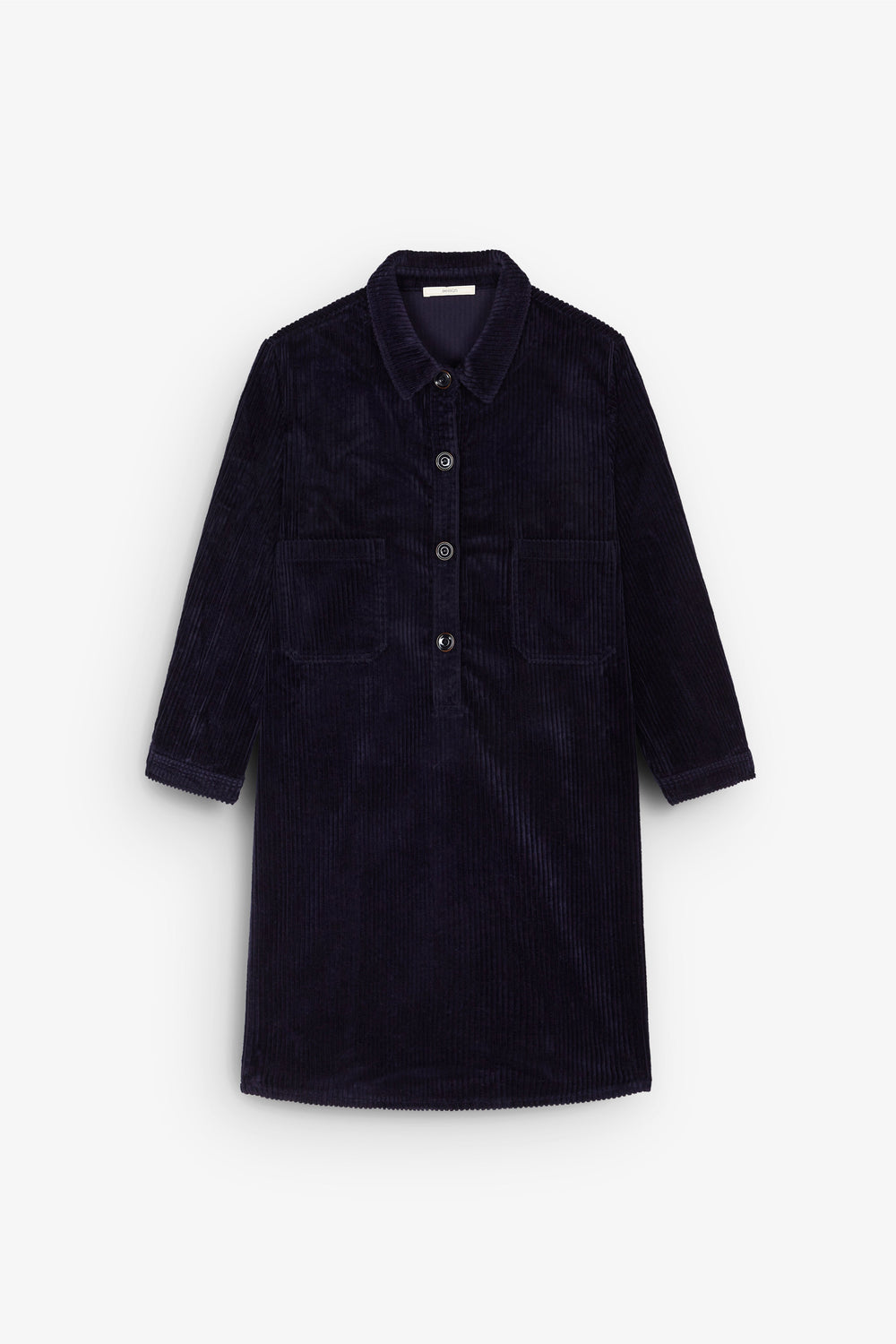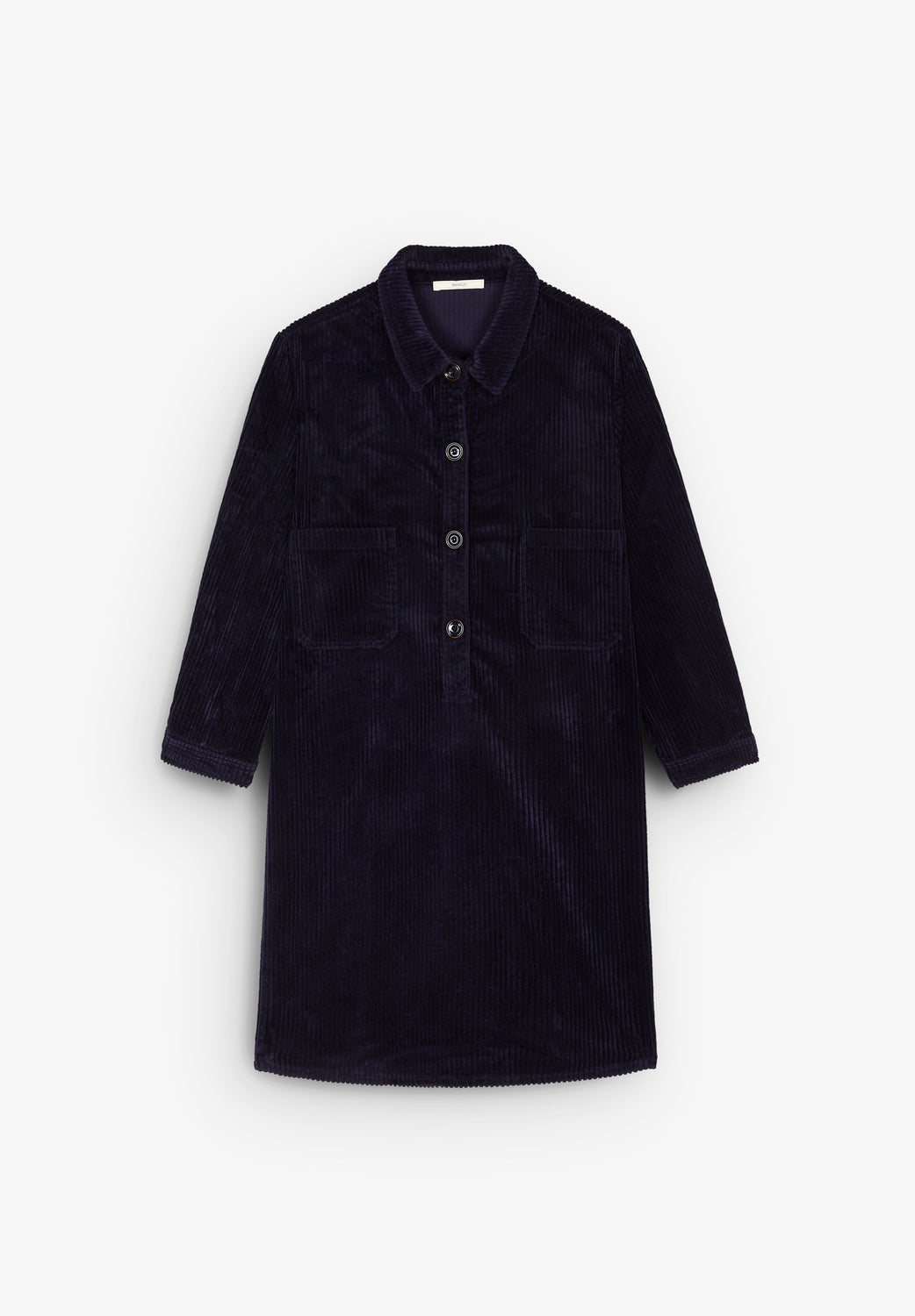 - Manga 3/4 e colarinho clássico.