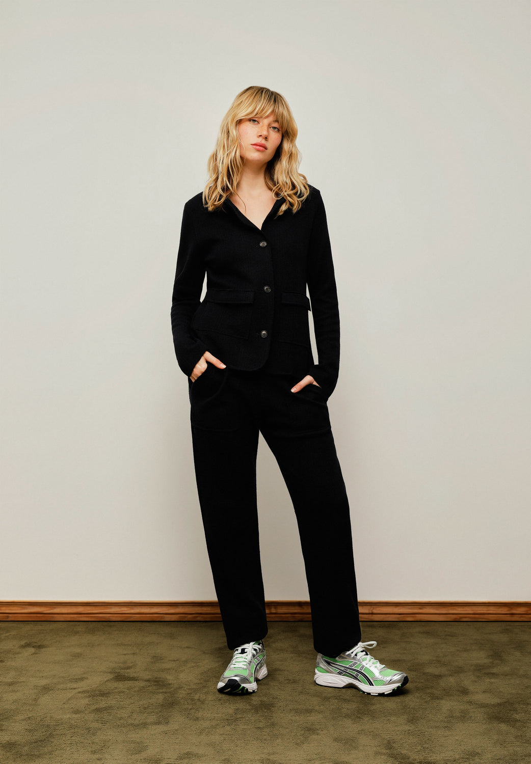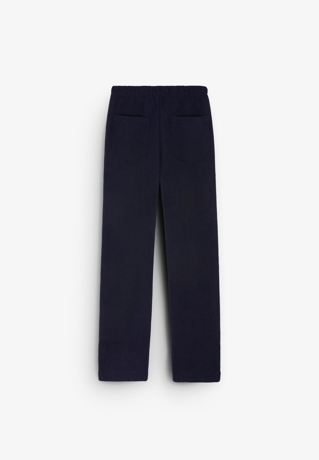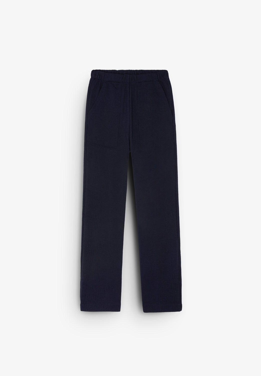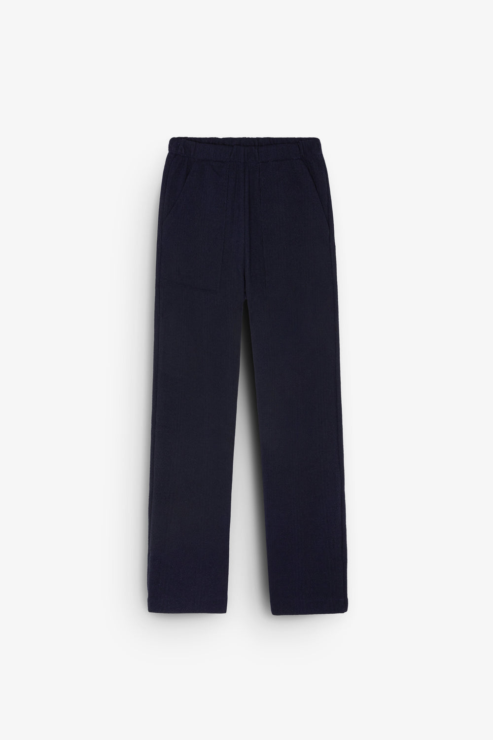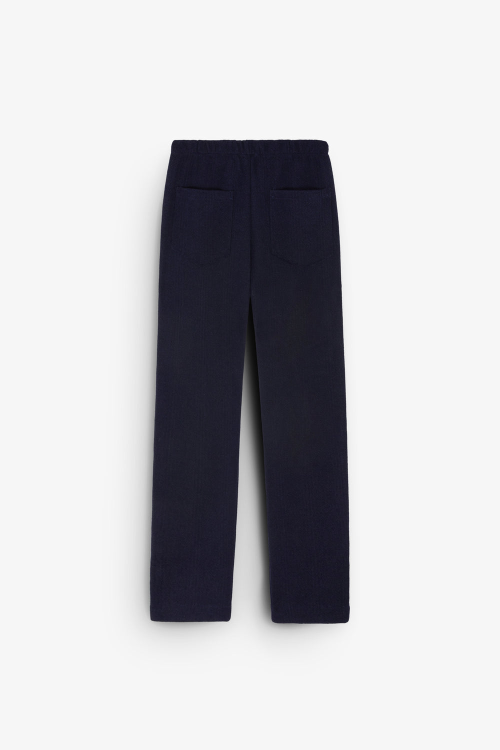Calças Mi&Co confecionadas em tecido de mistura de lã, poliéster e algodão.