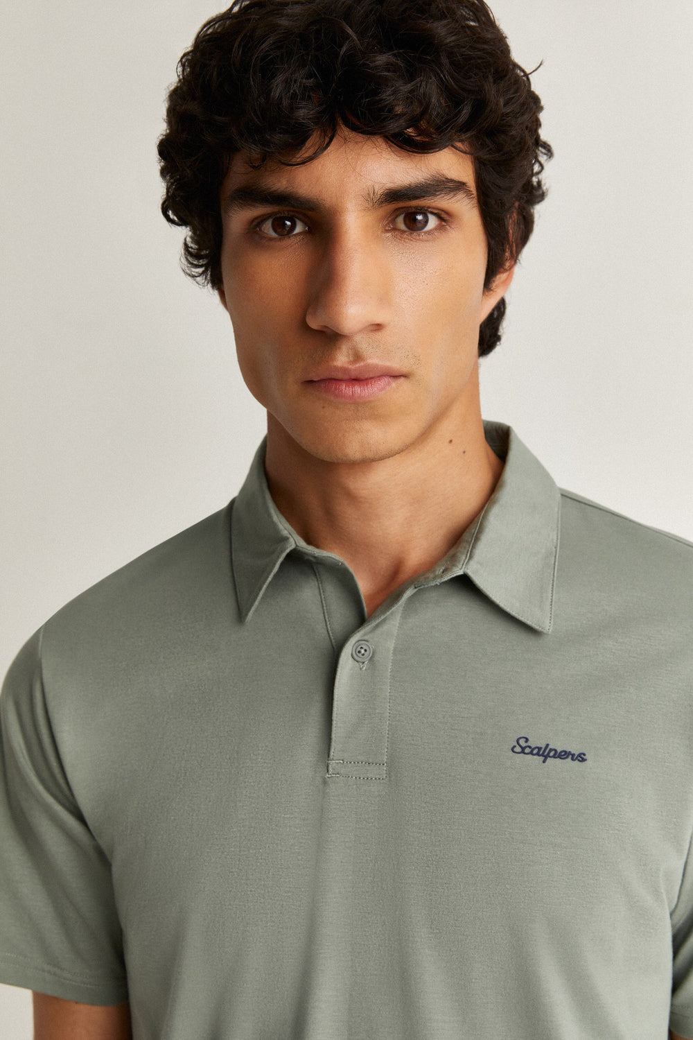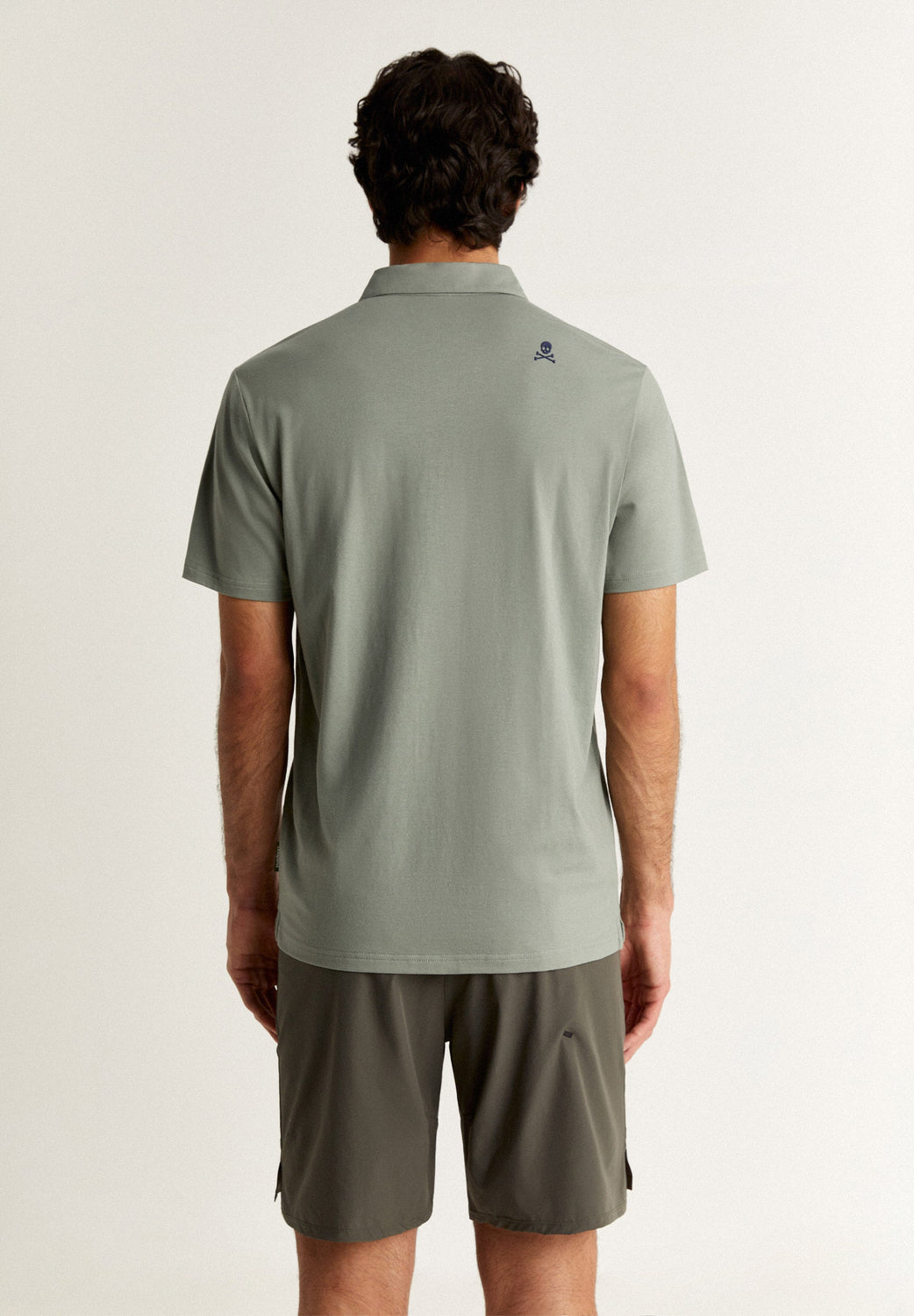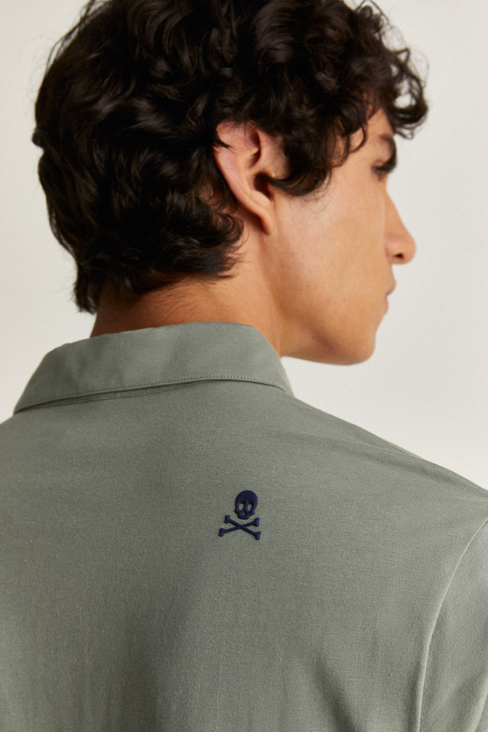 Camisa polo com tato suave e pormenor de logótipo e skull a contrastar.
