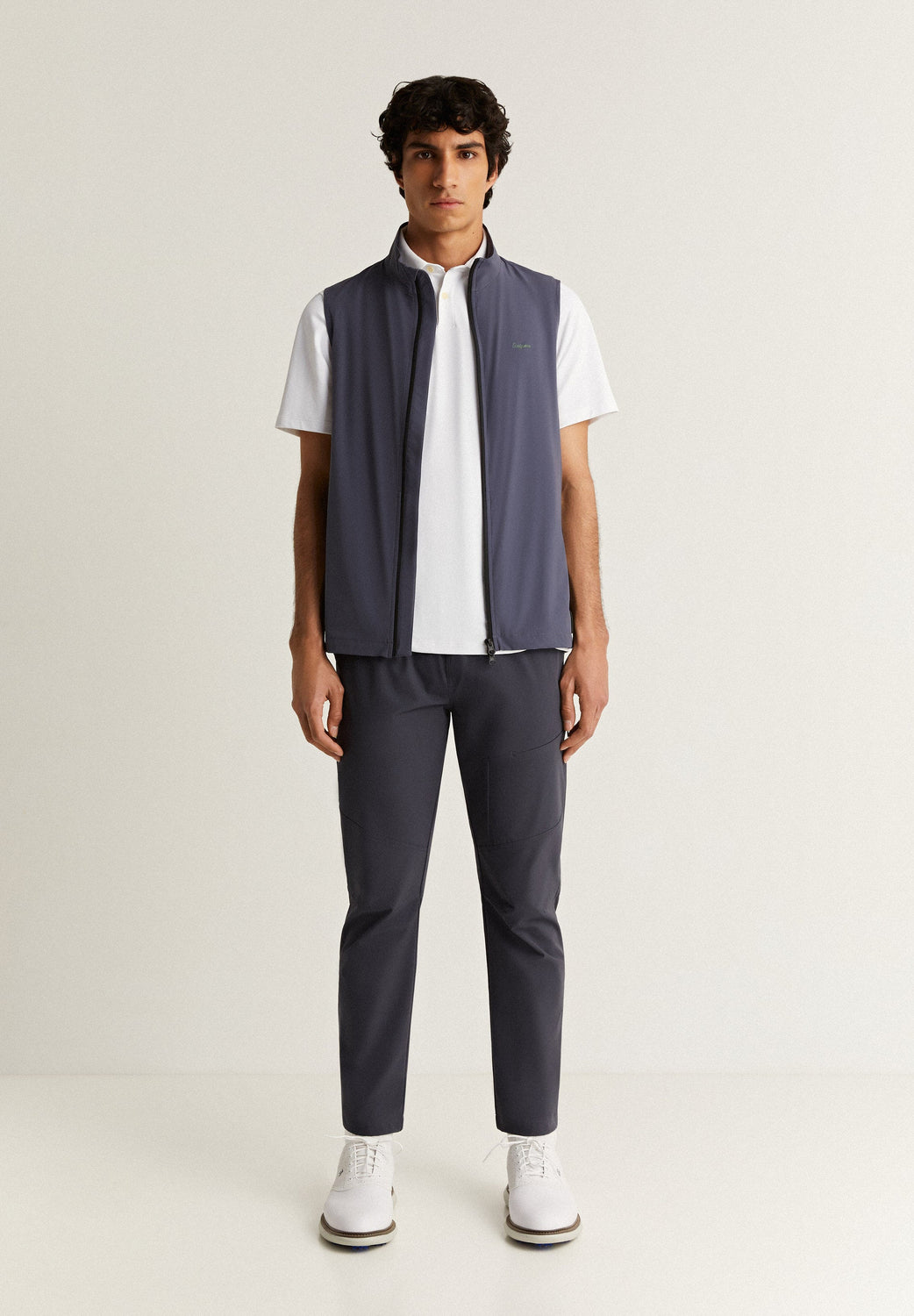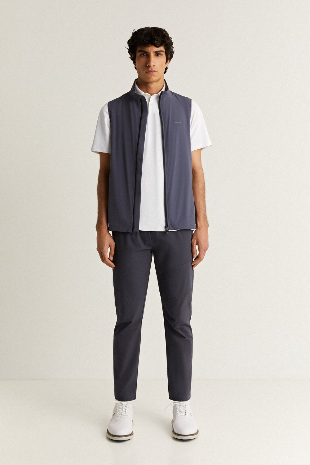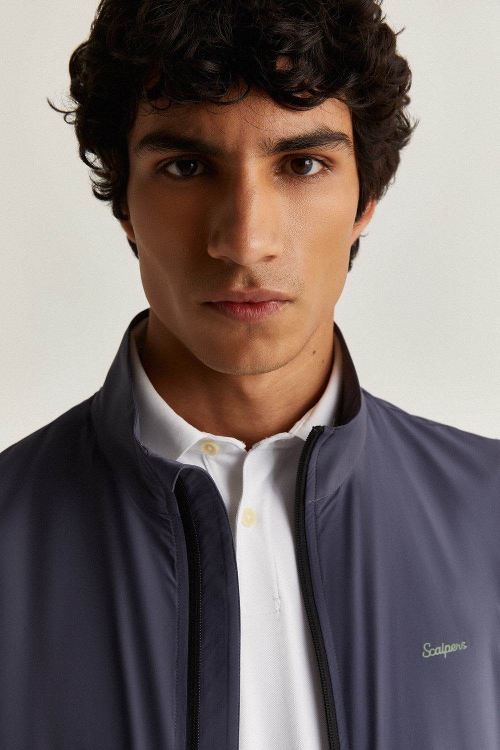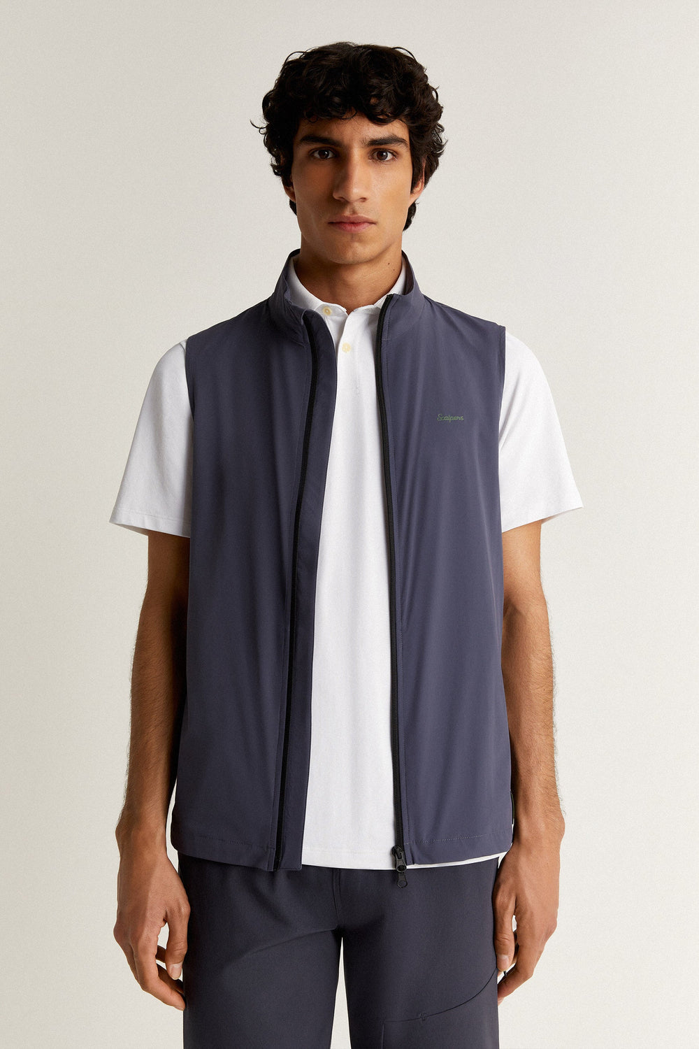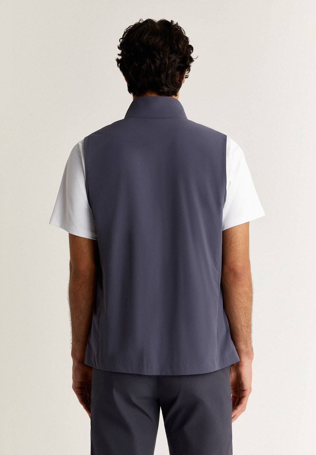 Colete corta-vento ligeiro autodobrável no seu próprio bolso.