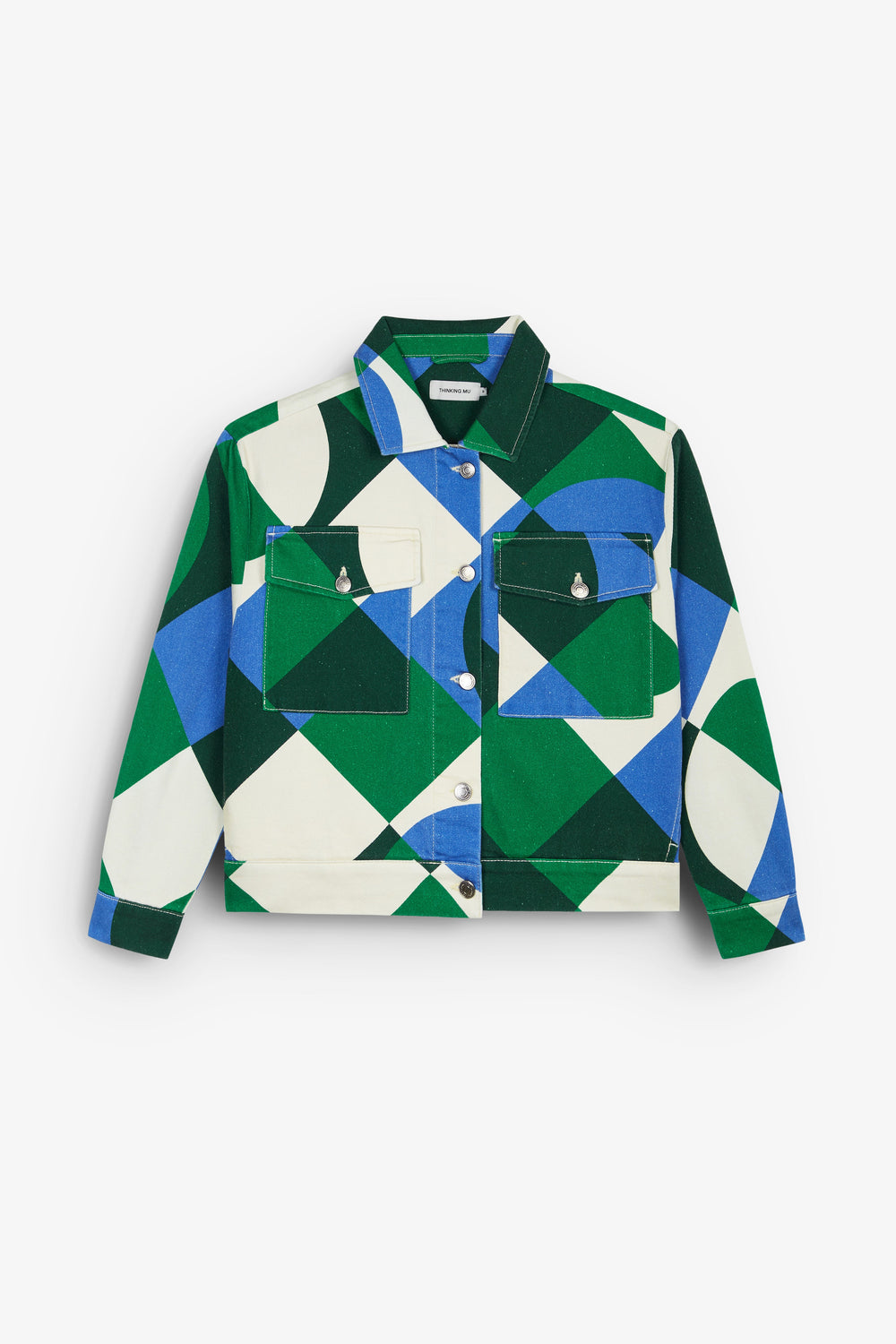 Casaco Thinking Mu confecionado em tecido de mistura de algodão orgânico e elastano.