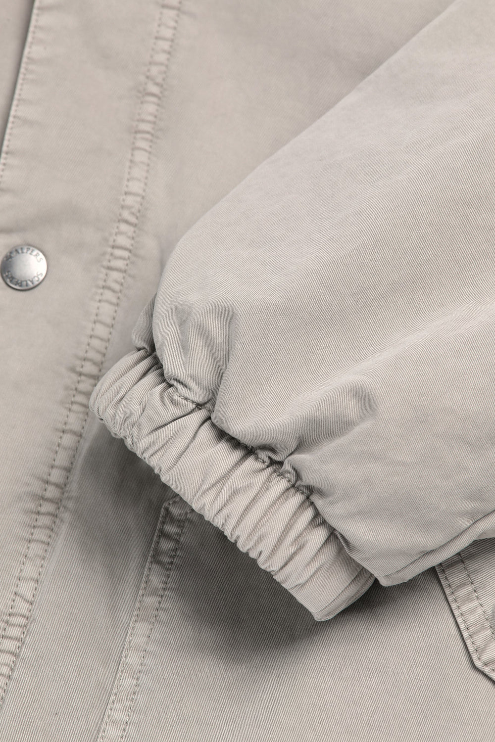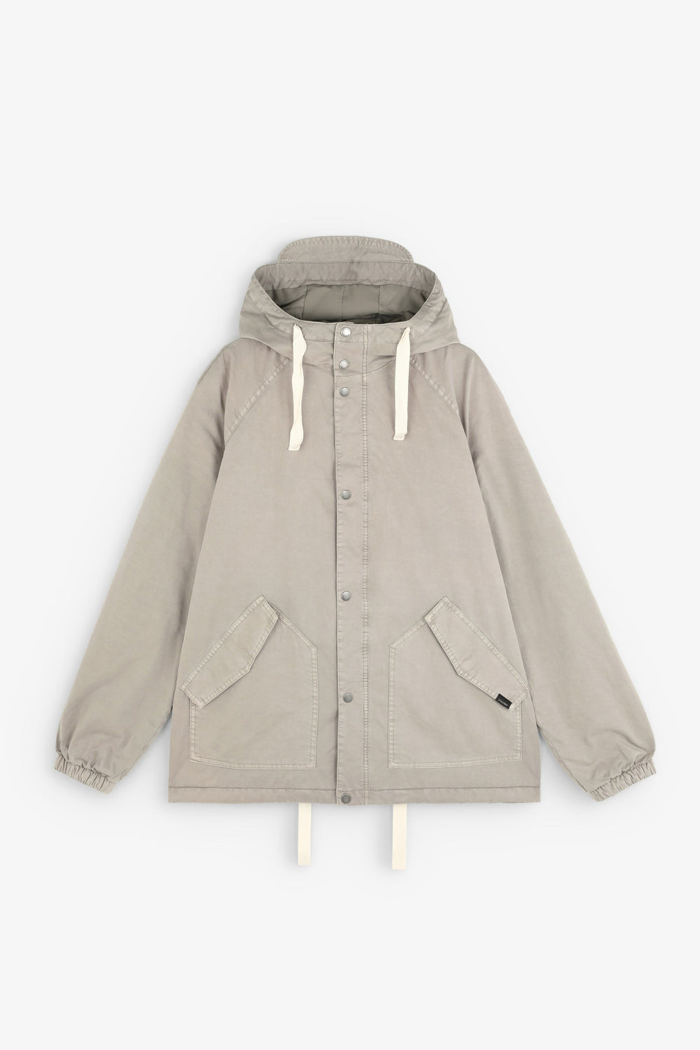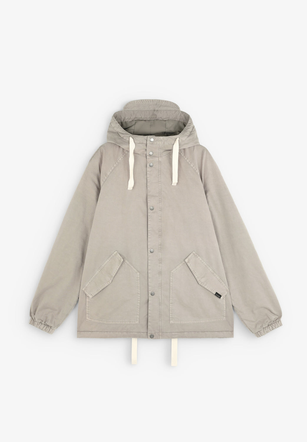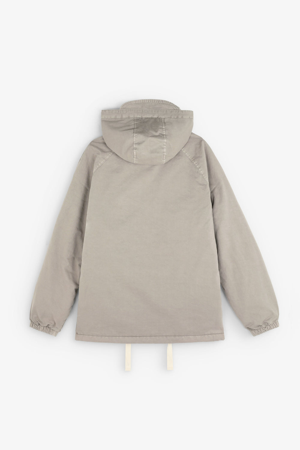 Casaco leve confecionado em 100% algodão BCI. Regular fit, gola com capuz ajustável com cordões e fecho com botões de pressão. Manga comprida terminada em elástico e bolsos com placket. Bolso interior com zip.