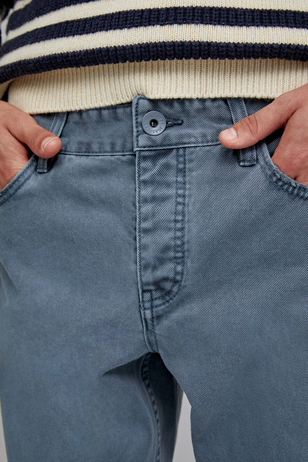 Calças confecionadas em 100% algodão BCI. Slim fit, fecho com botão e zip. Bolsos à frente e atrás.