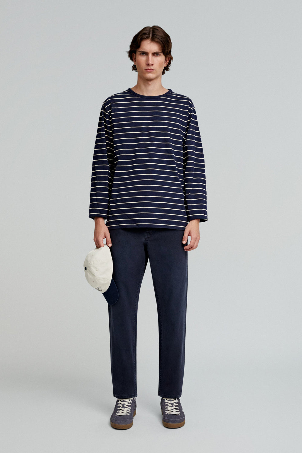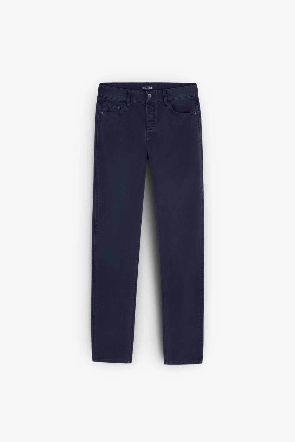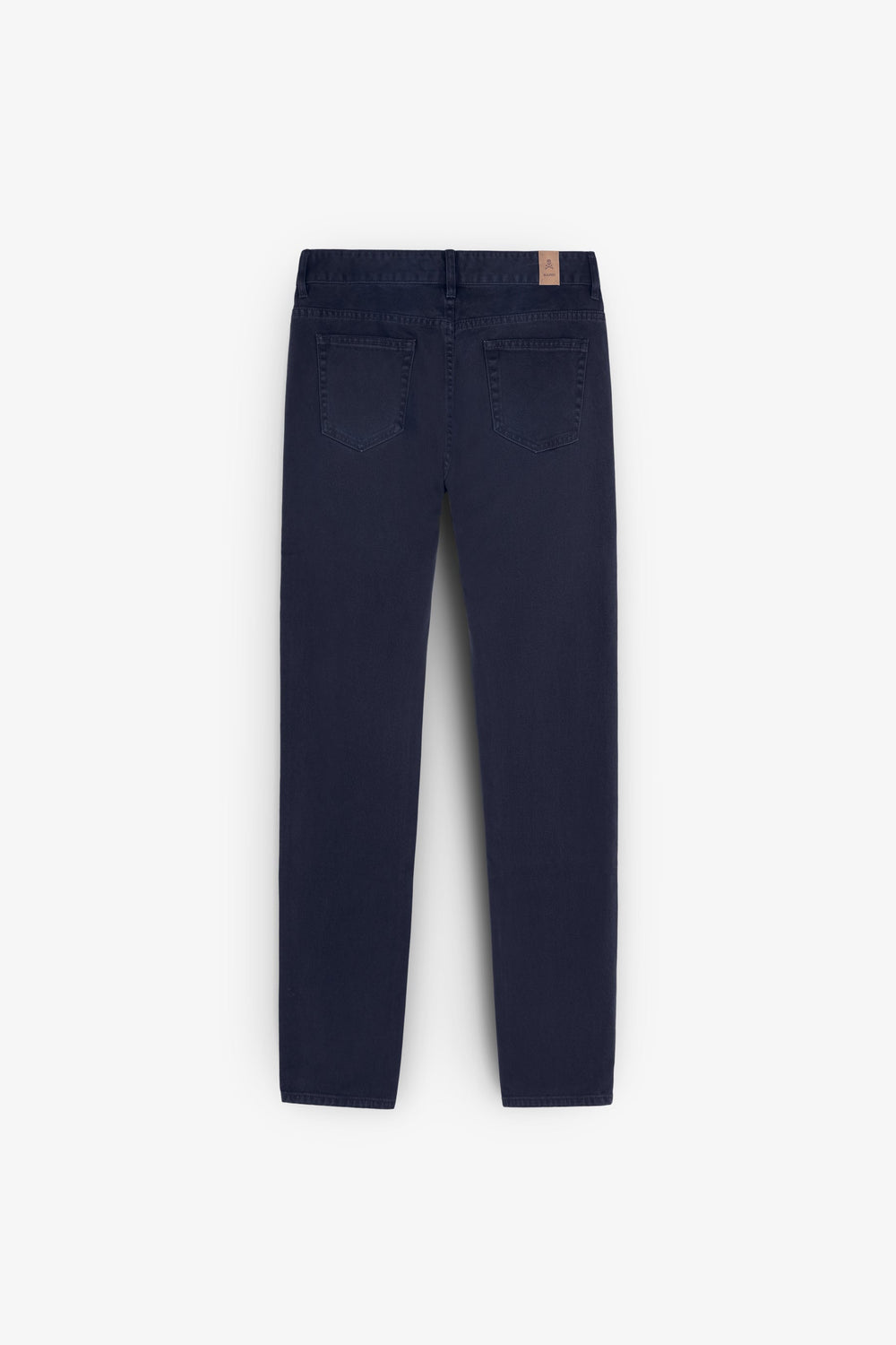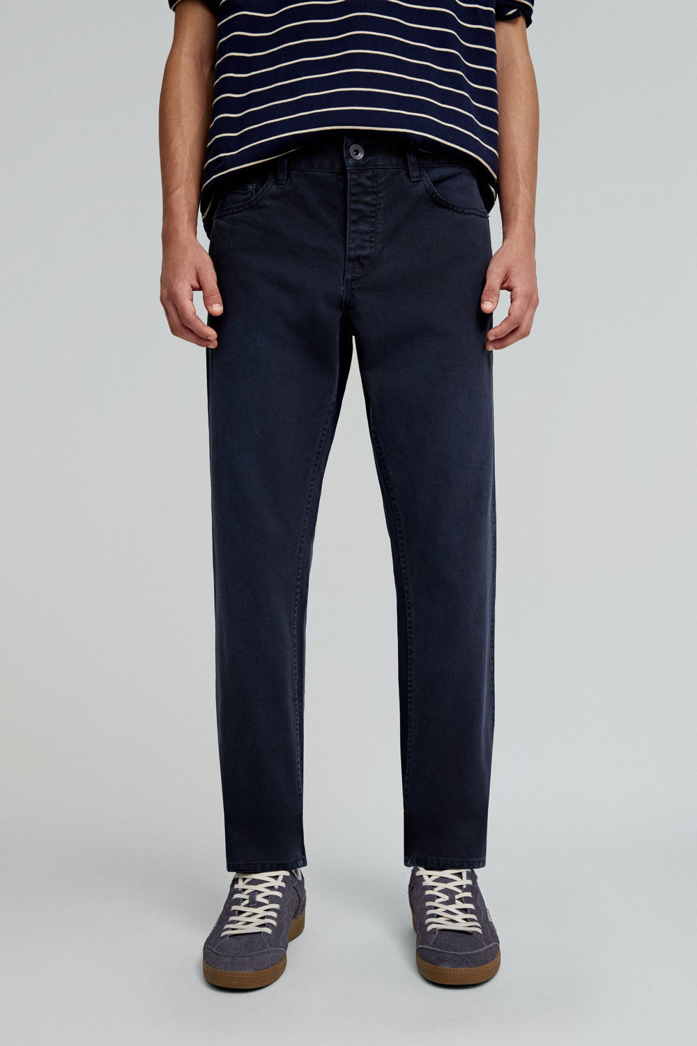 Calças confecionadas em 100% algodão BCI. Slim fit, fecho com botão e zip. Bolsos à frente e atrás.