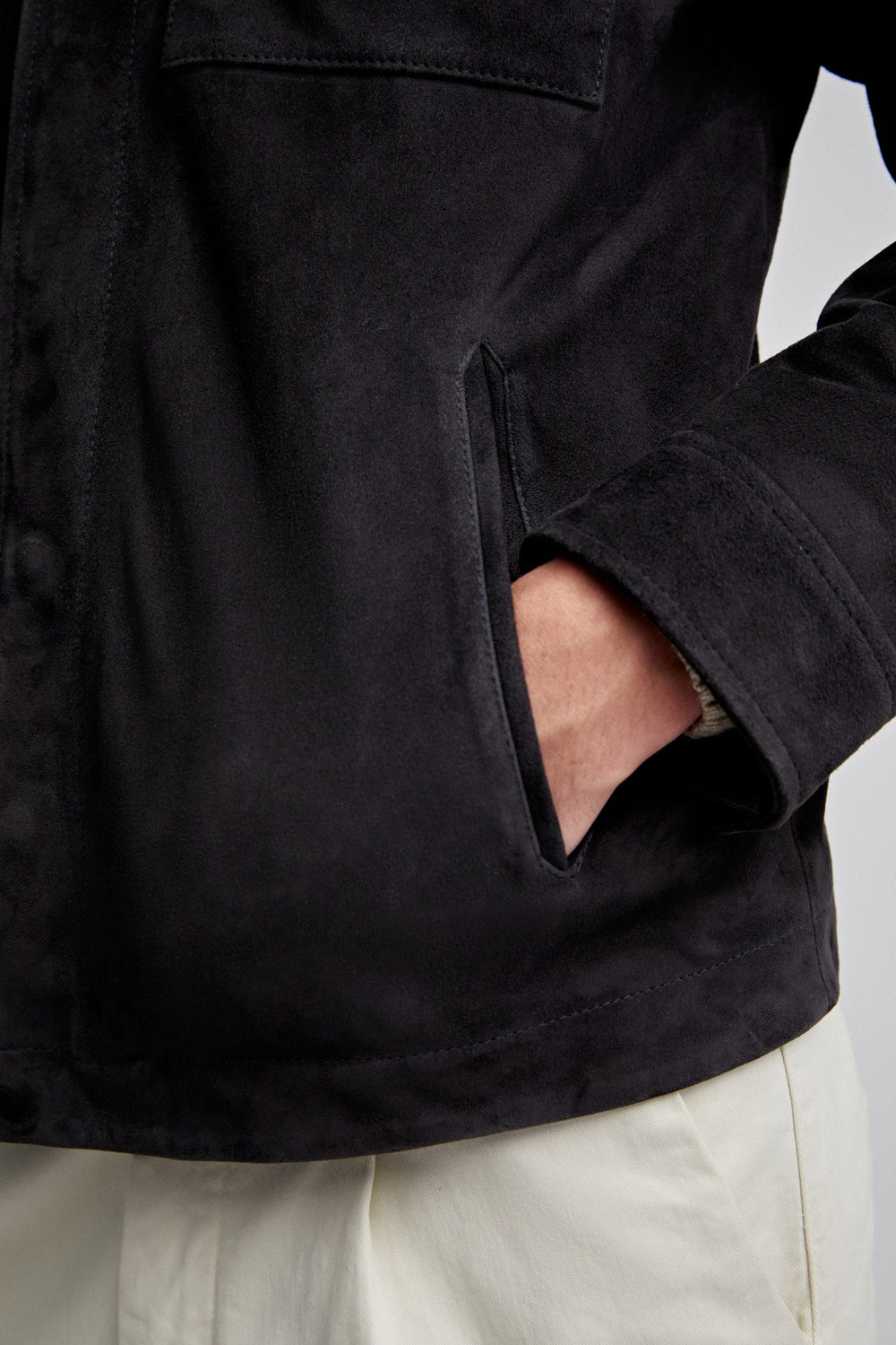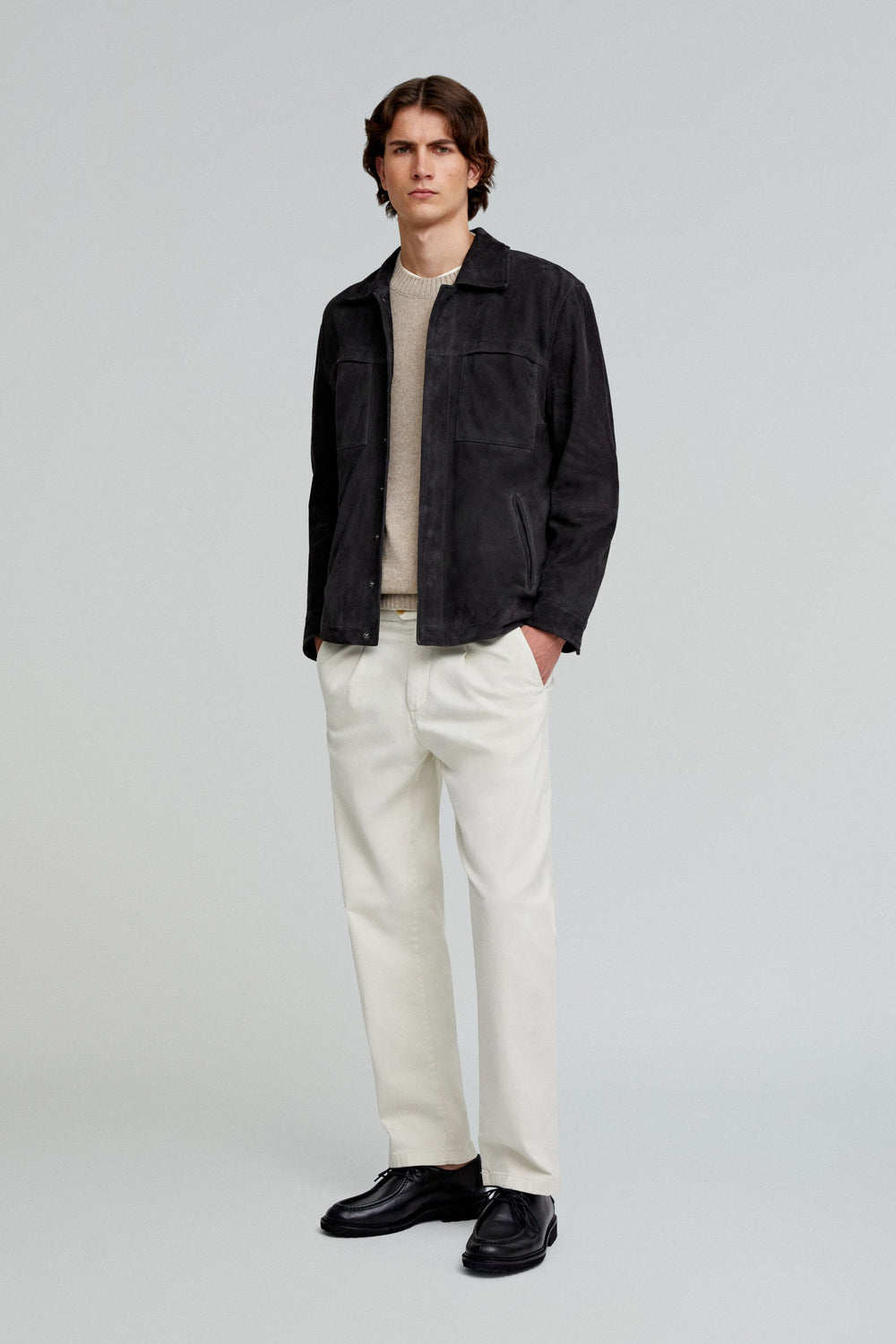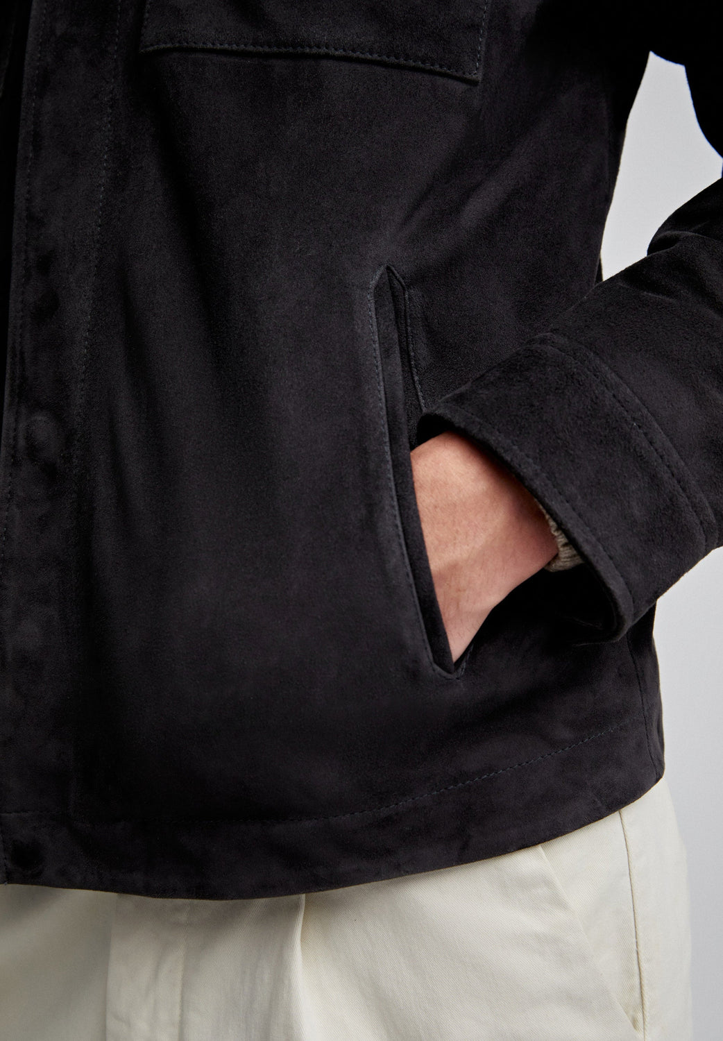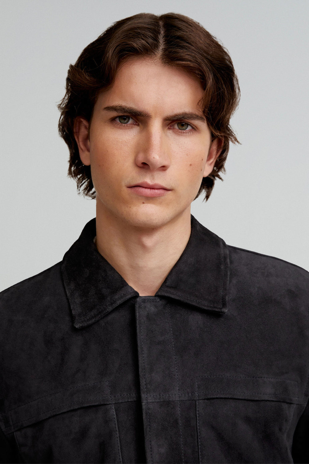 Casaco de camurça confecionado em 100% pele. Regular fit, colarinho clássico e fecho com zip com placket. Manga comprida com botão de pressão no punho. Bolsos frontais e laterais.