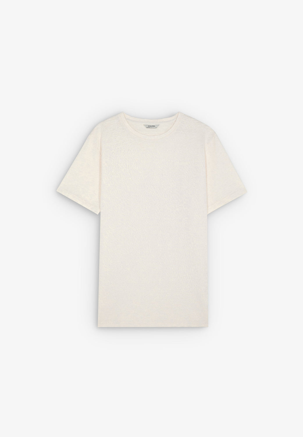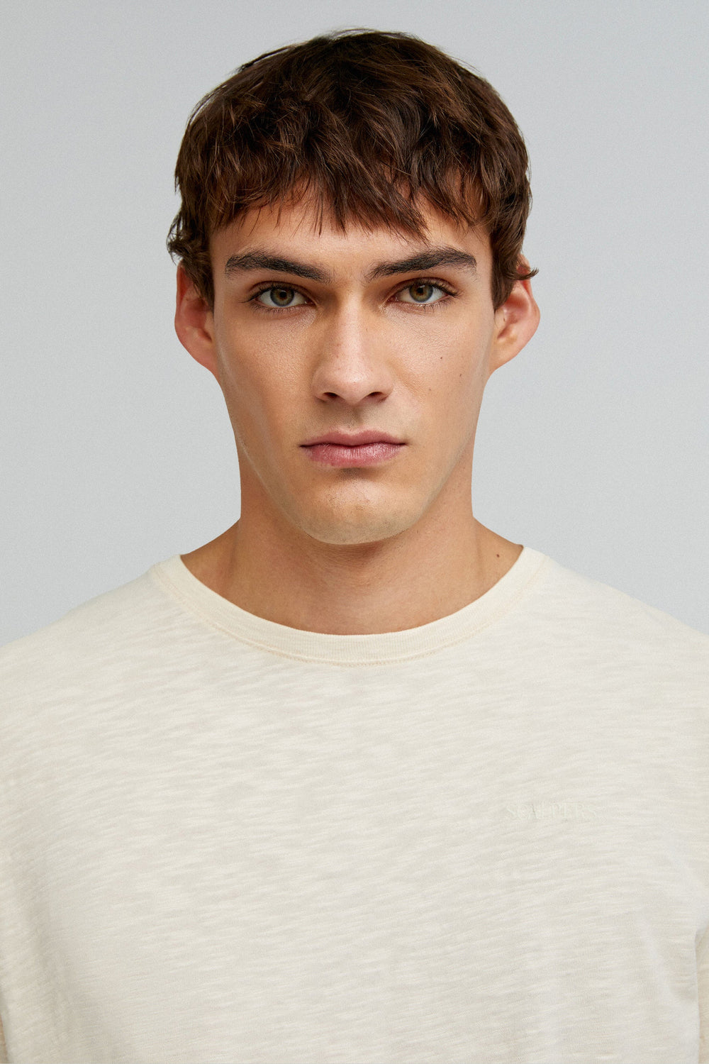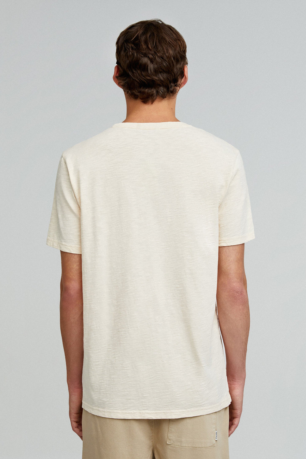 T-shirt em tecido flamé em 100% algodão BCI. Regular fit, decote redondo e manga curta. Logótipo bordado no tom.