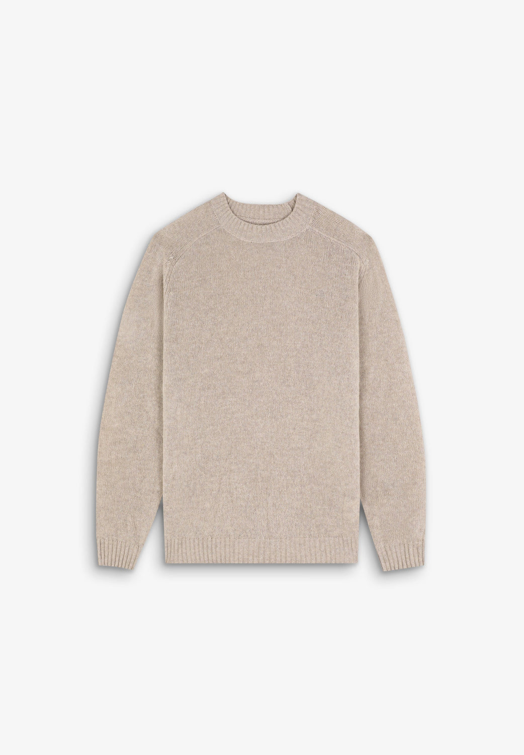 Sweater confecionada em mistura de lã recycled. Regular fit, decote canelado e manga comprida raglã. Skull bordada no tom.