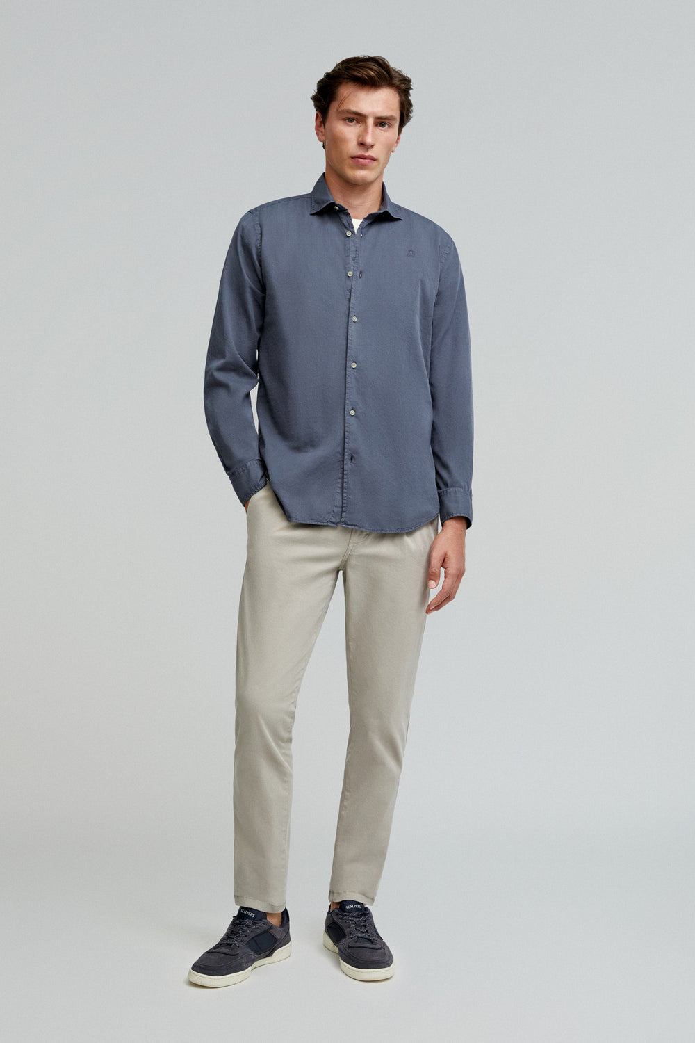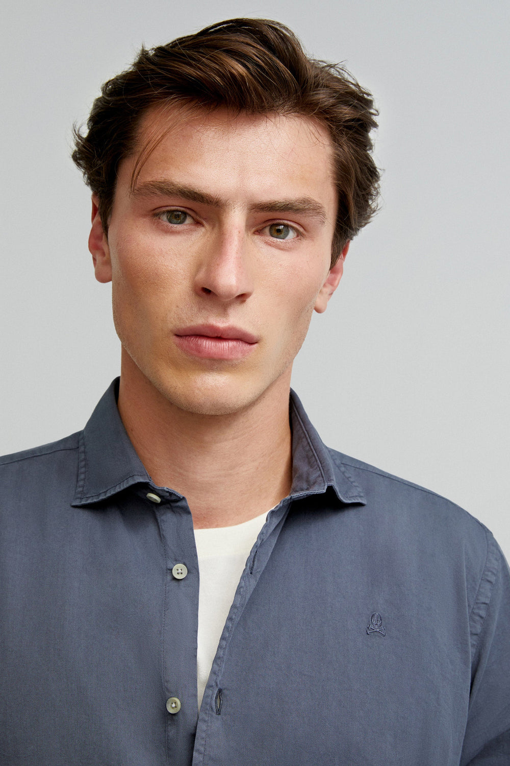 Camisa confecionada em tecido 100% algodão. Regular fit, colarinho cutaway e fecho com botões. Manga comprida terminada em punho com botões e logótipo bordado no tom.