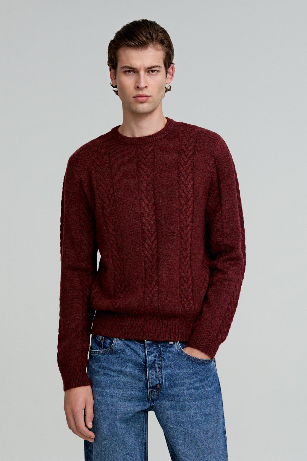 Sweater confecionada em mistura de alpaca. Regular fit, decote redondo e manga comprida. Pormenores trançados.