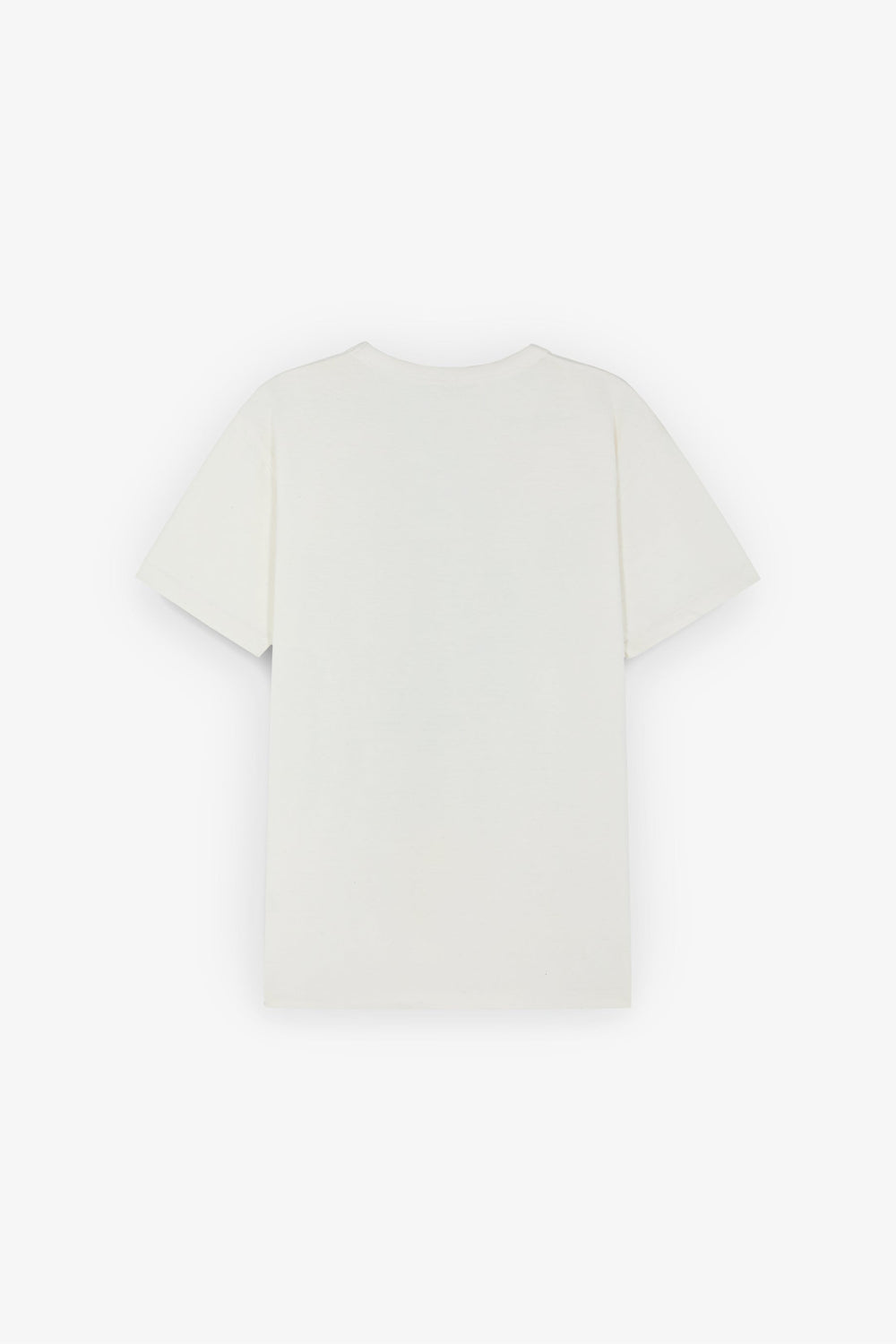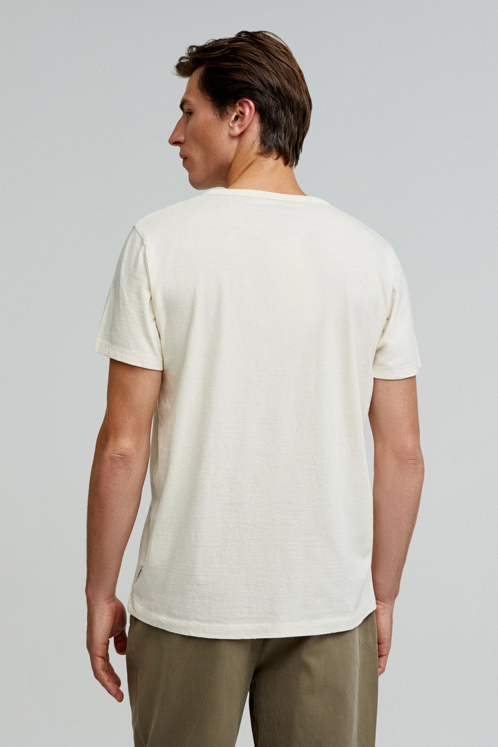 T-shirt confecionada em 100% algodão BCI. Relaxed fit, decote redondo e manga curta. Padrão à frente.