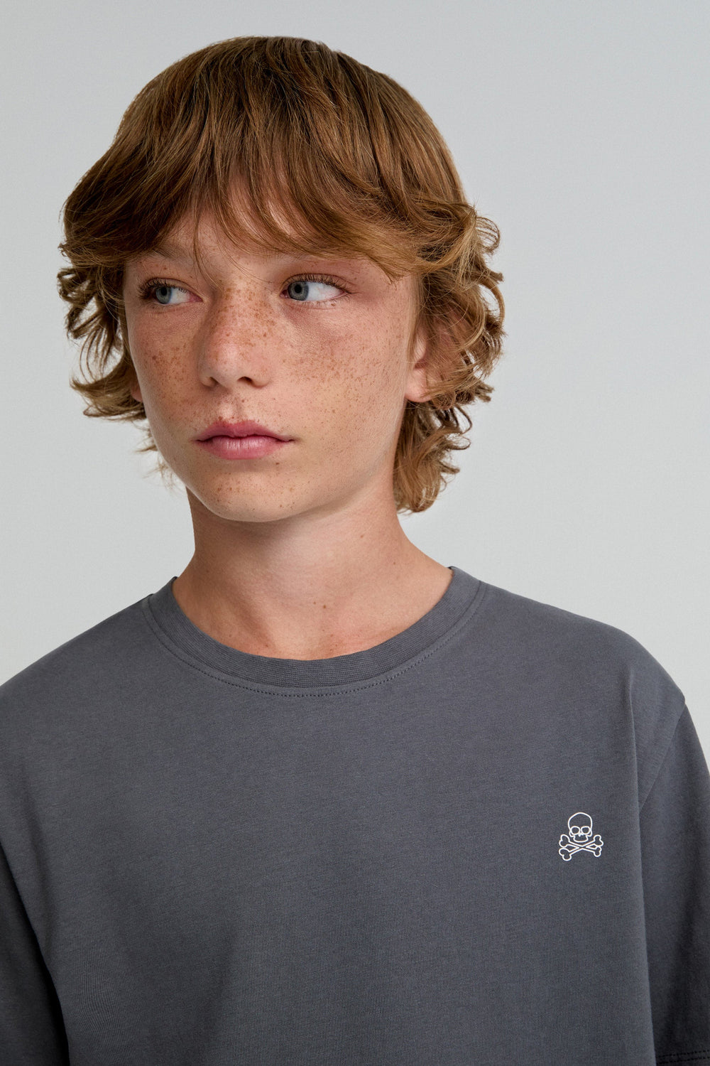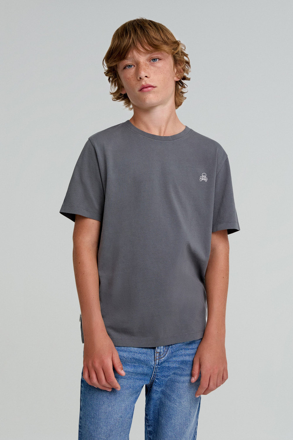 T-shirt com estampado atrás. Decote redondo, confecionada em 100% algodão BCI. Corte Regular Fit. Manga curta.