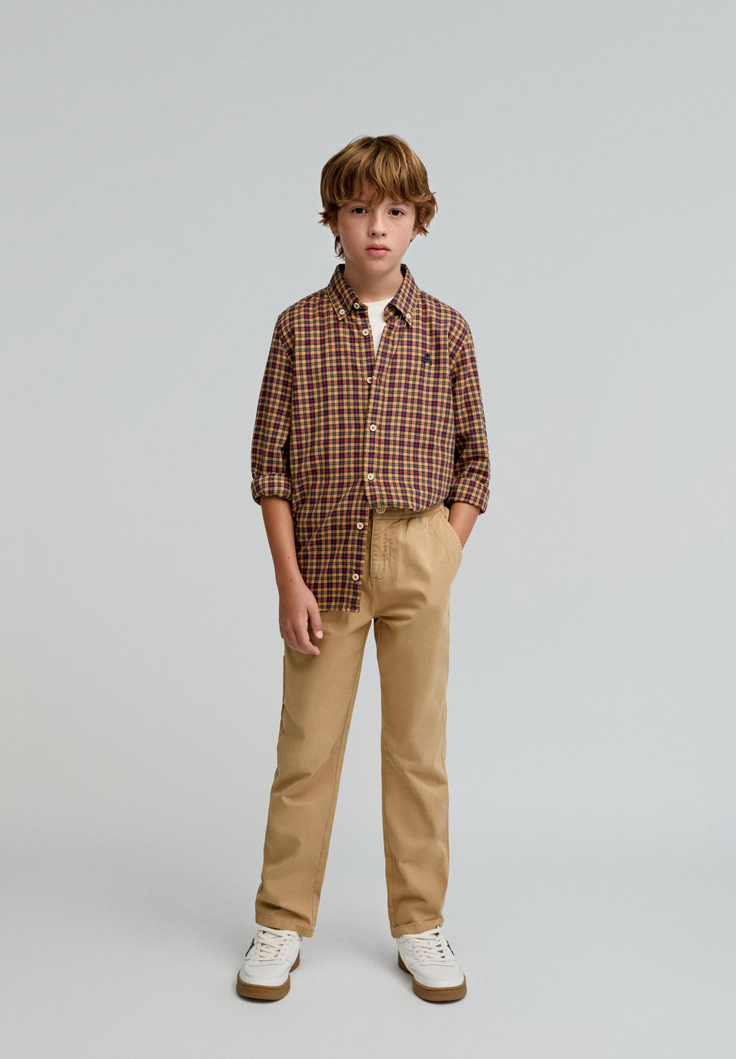 Camisa de xadrez confecionada em 100% algodão BCI. Regular fit, colarinho com botão e fecho com botões. Manga comprida terminada em punho com botões. Logótipo bordado a contrastar.