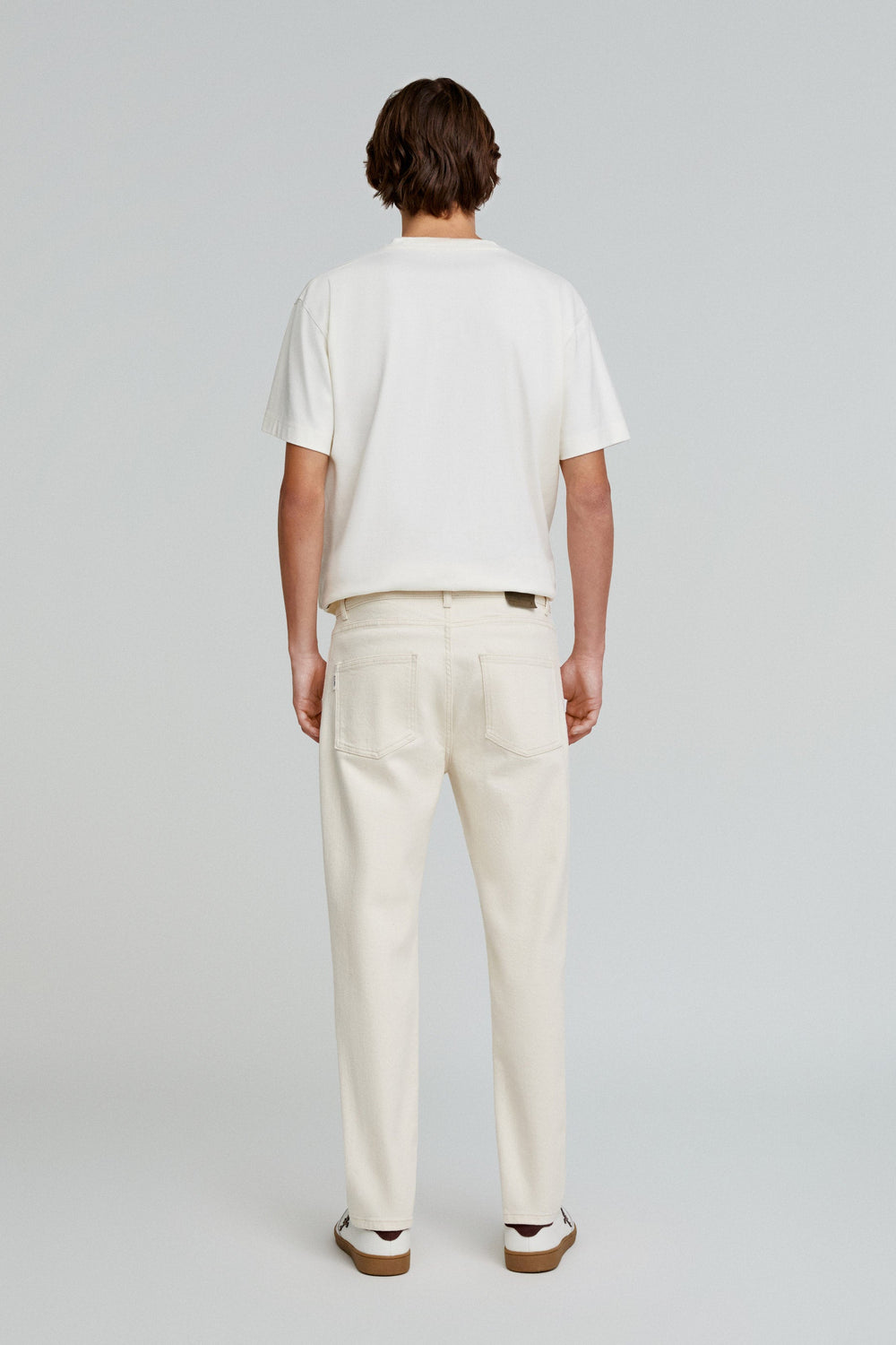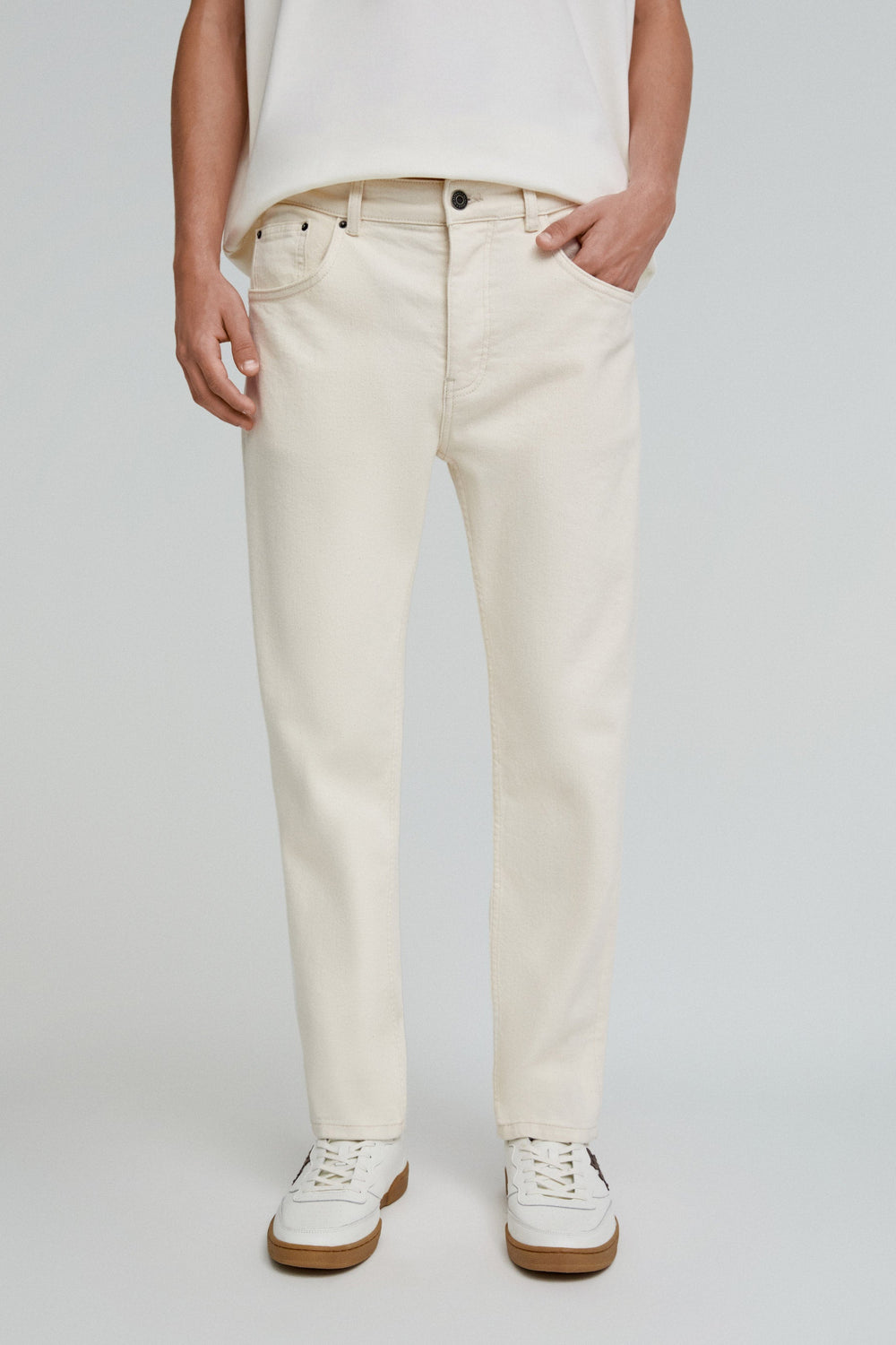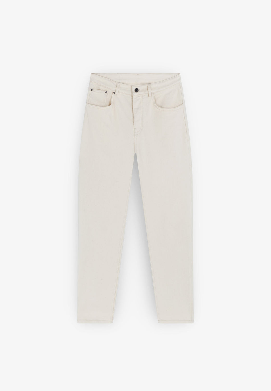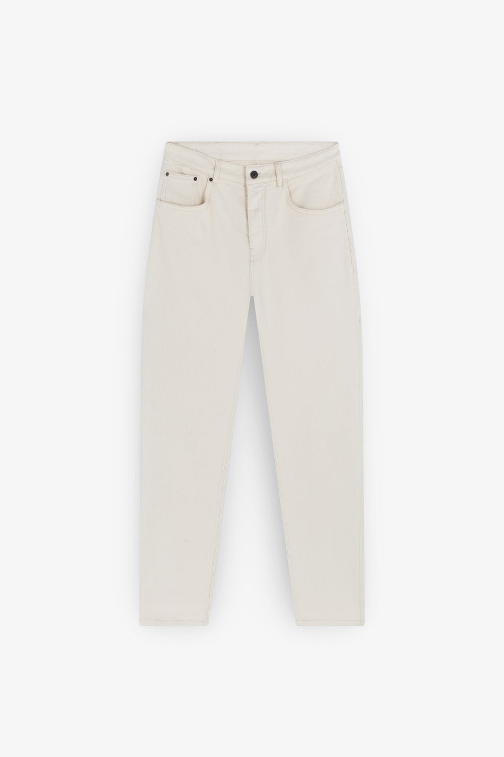Jeans cropped confecionados em algodão ligeiramente elástico. Regular fit, fecho com botão e zip. Bolsos frontais e traseiros e presilhas na cintura.
