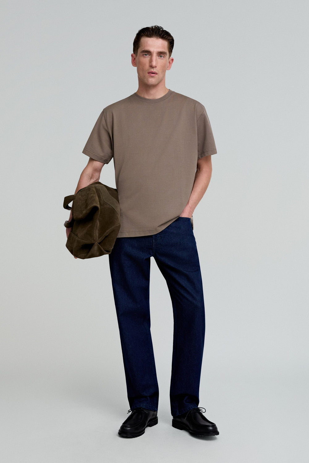 T-shirt confecionada em 100% algodão BCI heavy. Boxy fit, decote redondo e manga curta.