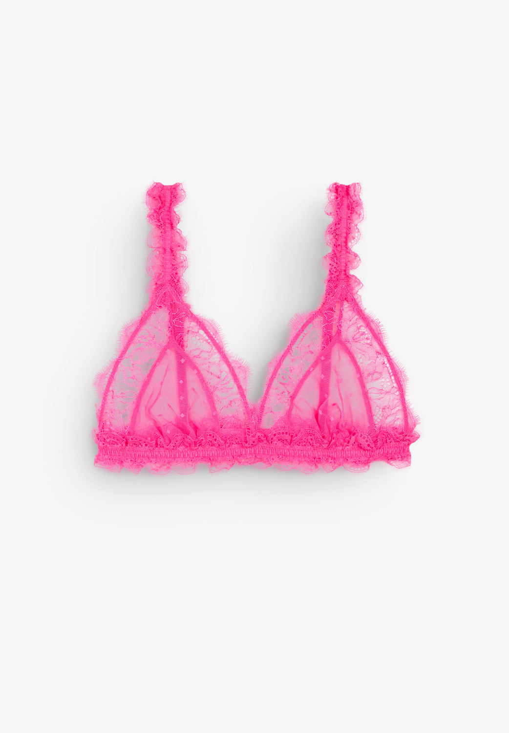 - Renda floral e malha de pontos.
