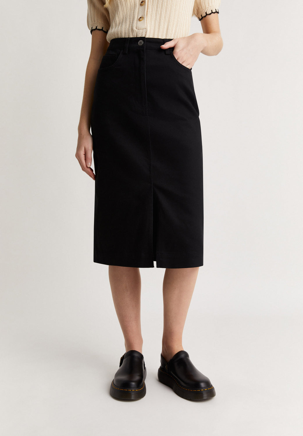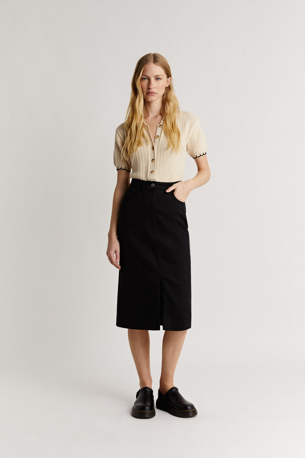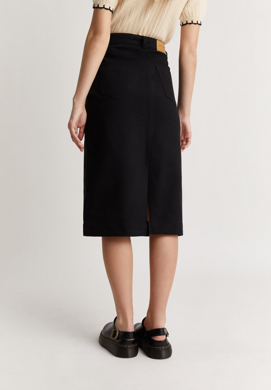 Saia de ganga midi Samsoe confecionada em tecido com mistura de algodão, viscose e elastano.