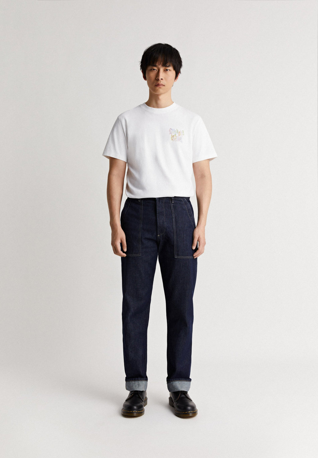 - Bolsos aplicados na parte da frente e de trás.
