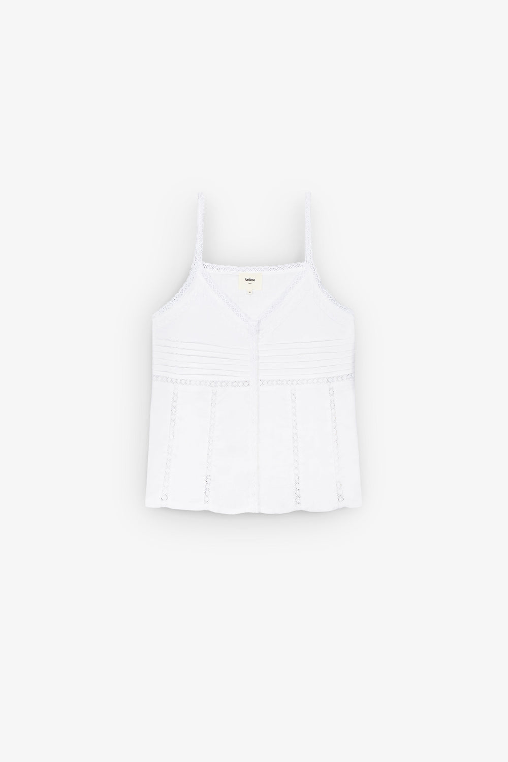 Top Artlove confecionado em tecido de mistura de linho, viscose e elastano.
