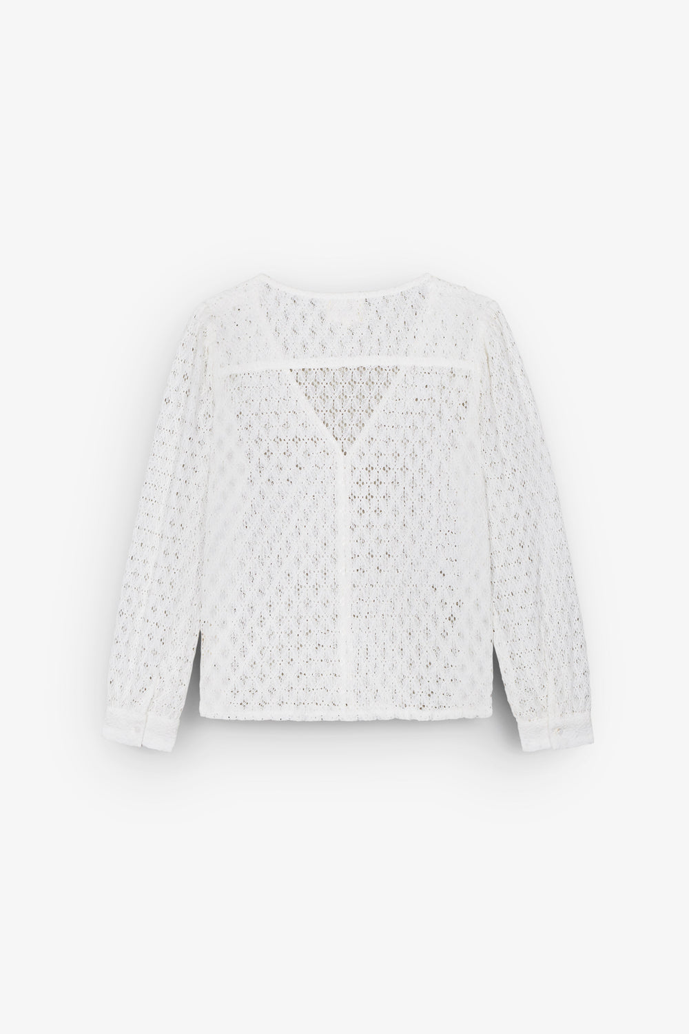 - Manga comprida com punho de botão.