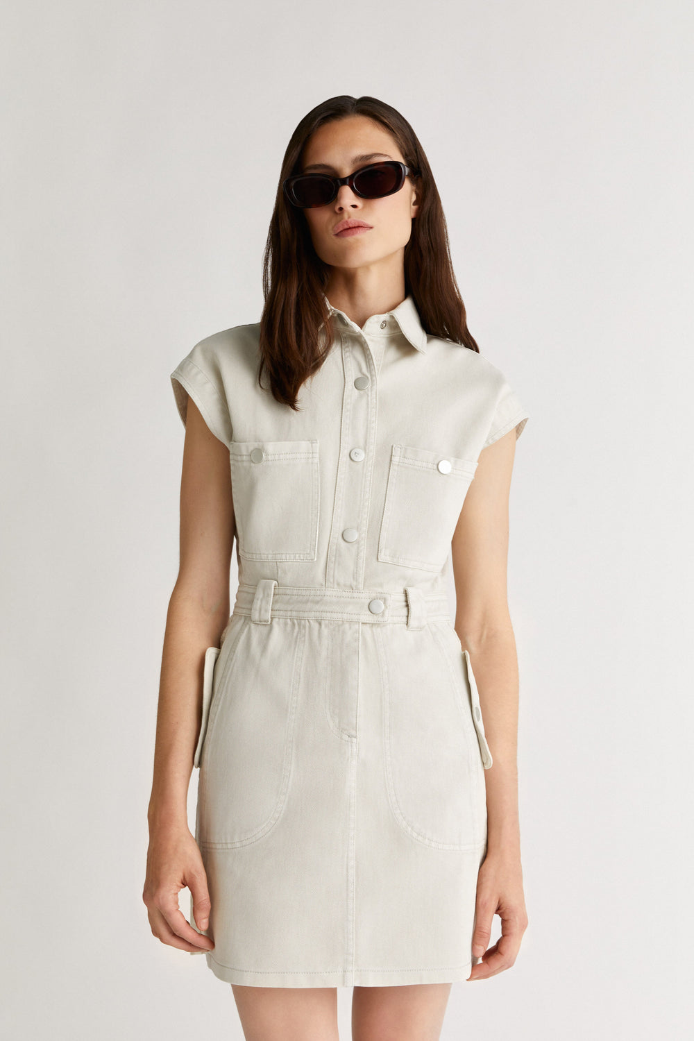 - Colarinho clássico com botões.