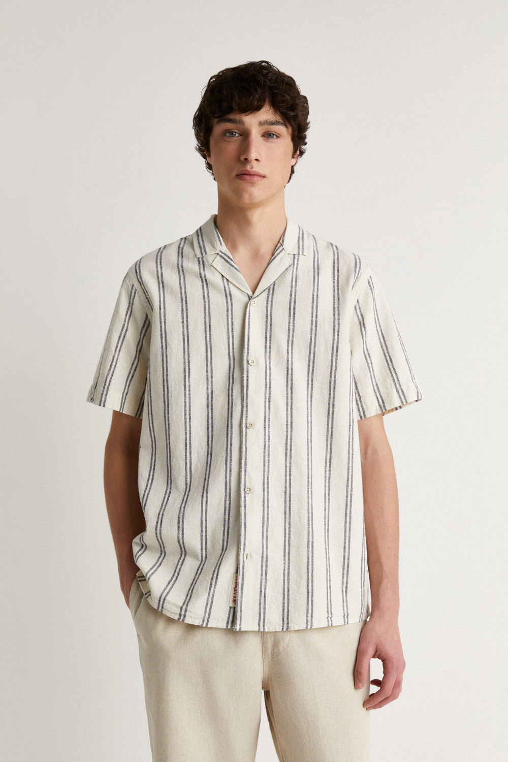 Camisa Revolution confecionada em tecido mescla de algodão orgânico e linho.