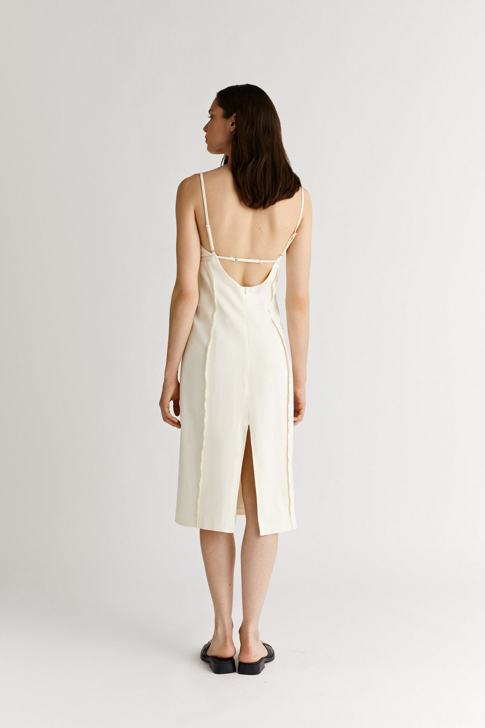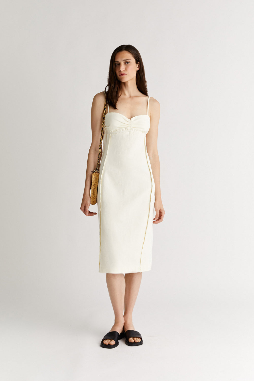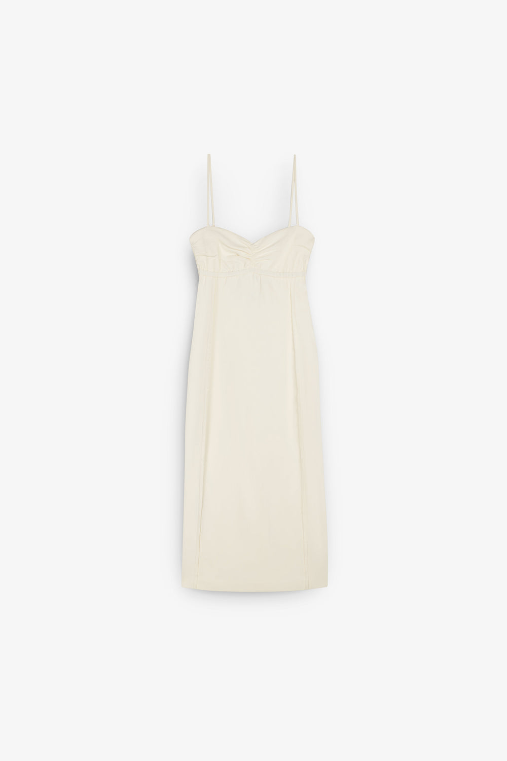 Vestido midi Samsoe confecionado em tecido de mistura de algodão, linho e elastano.