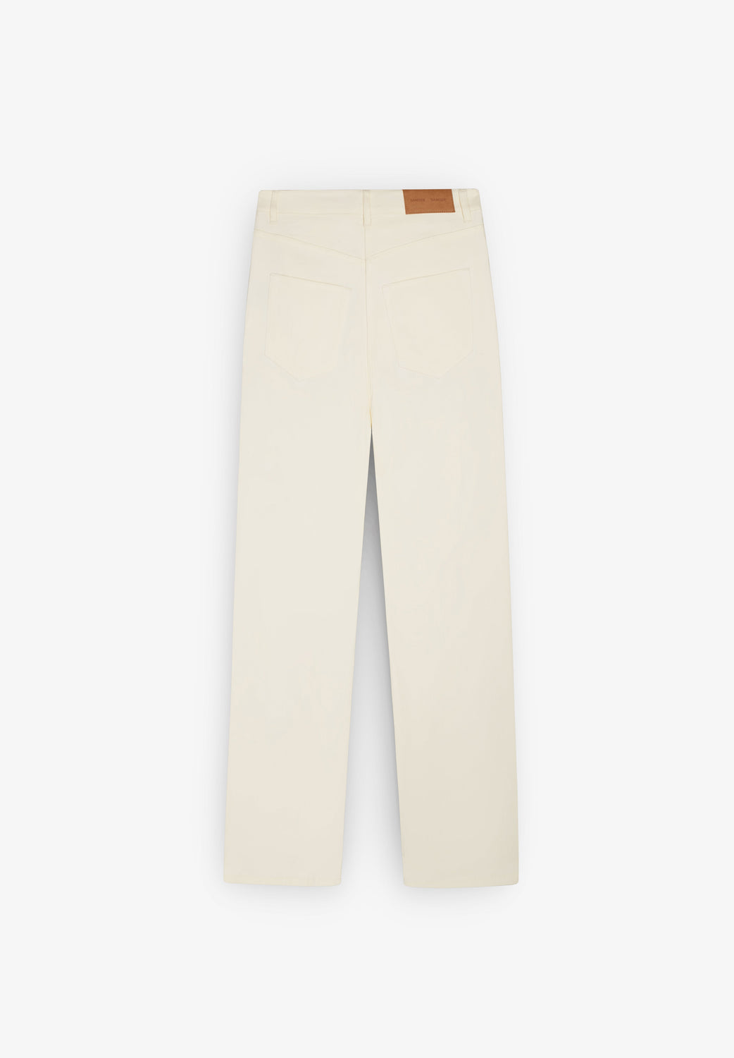 Calças Samsoe confecionadas em tecido com mistura de algodão, linho e elastano.