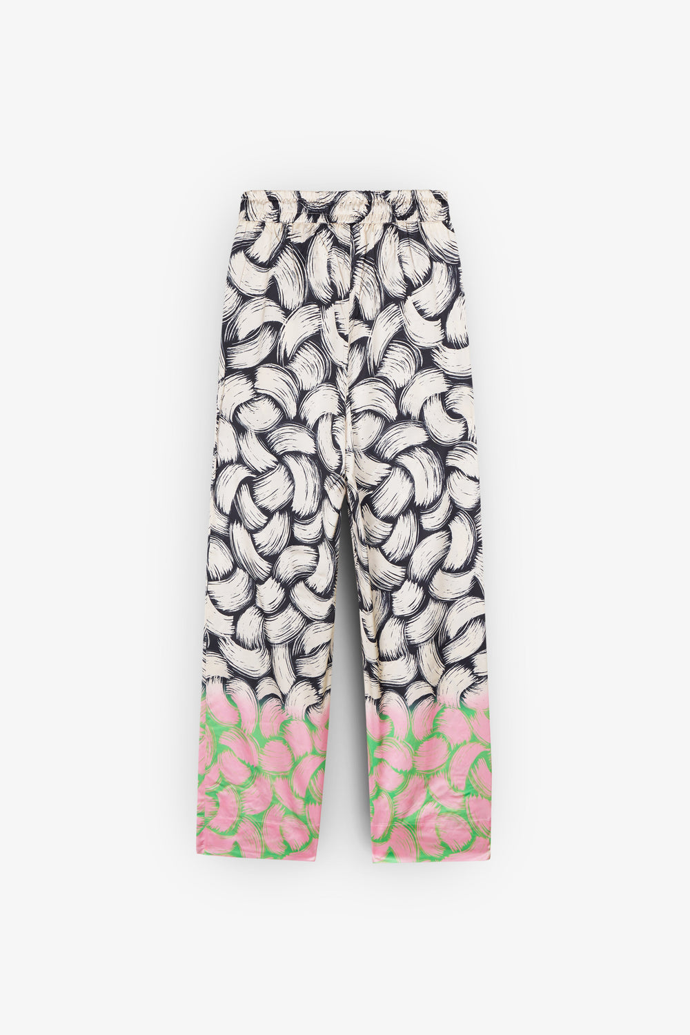 Calças Essentiel confecionadas em tecido 100% poliéster.
