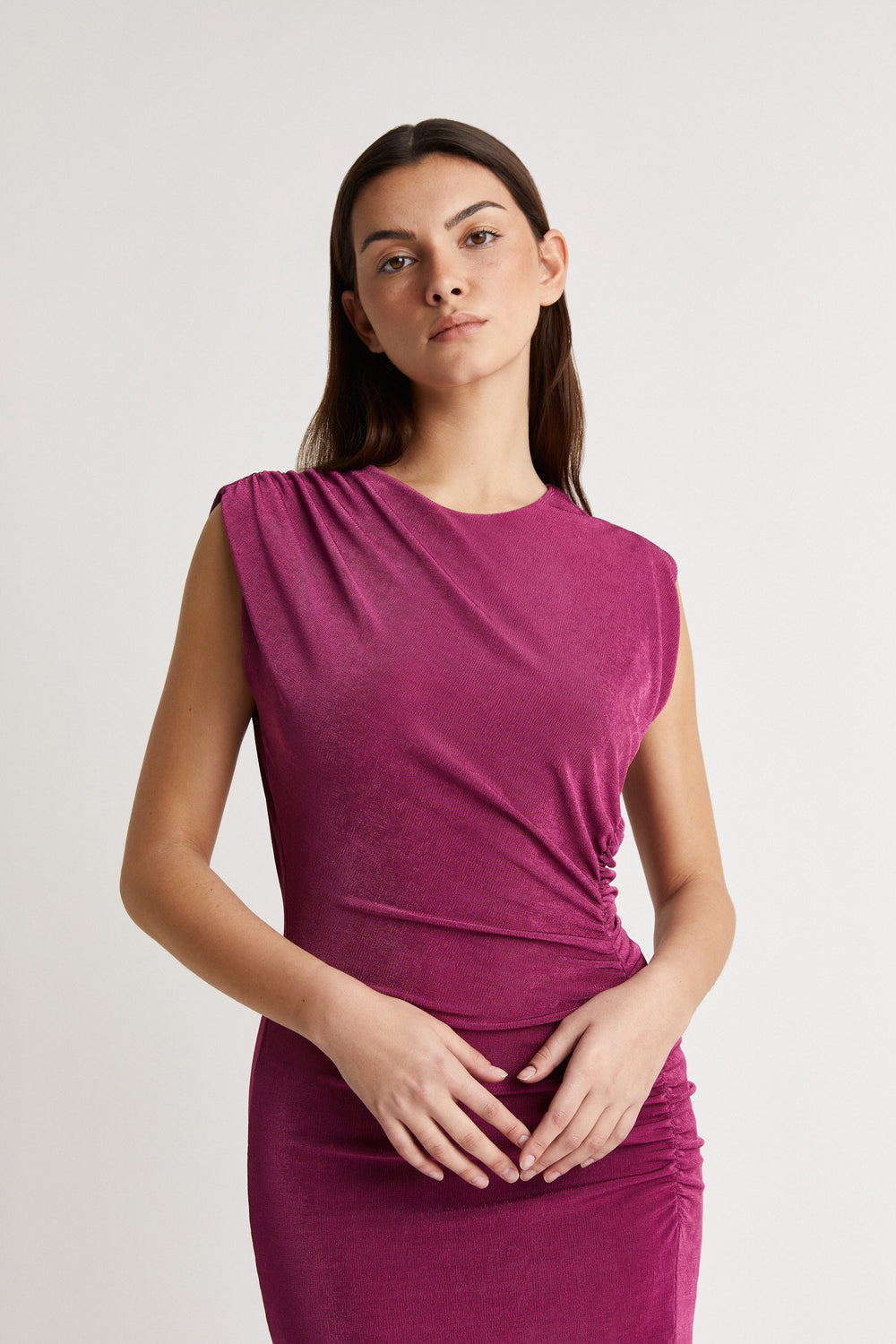 Vestido midi Essentiel confecionado em tecido de mistura de poliéster e elastano.