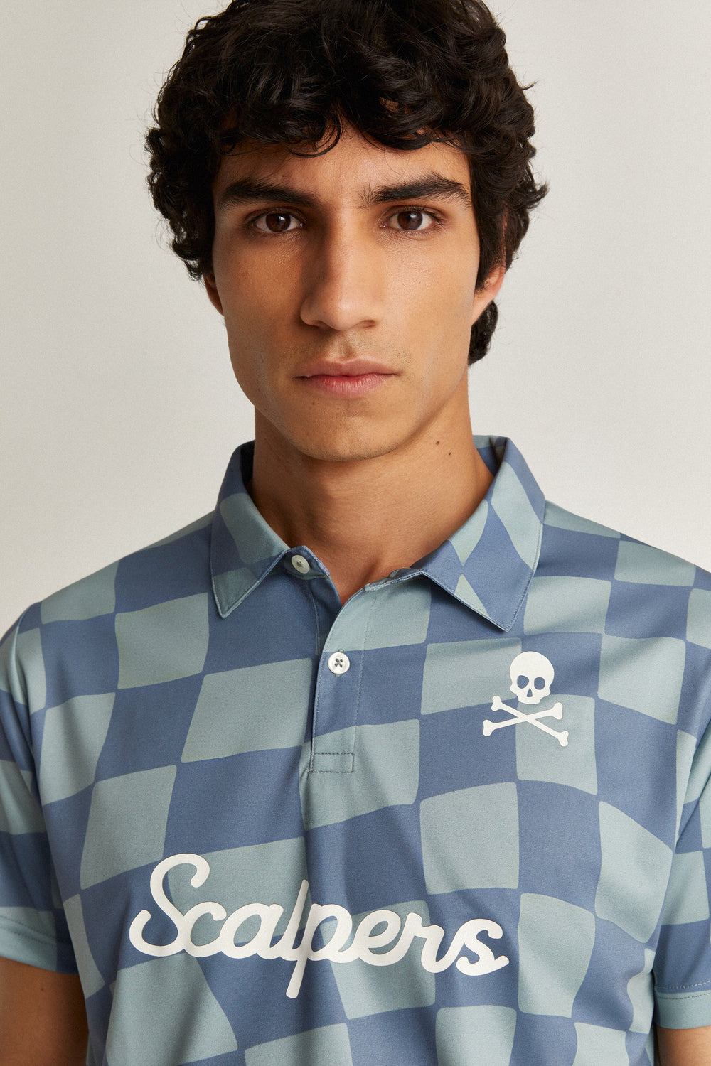 Camisa polo de xadrez com padrão frontal de logótipo e skull.