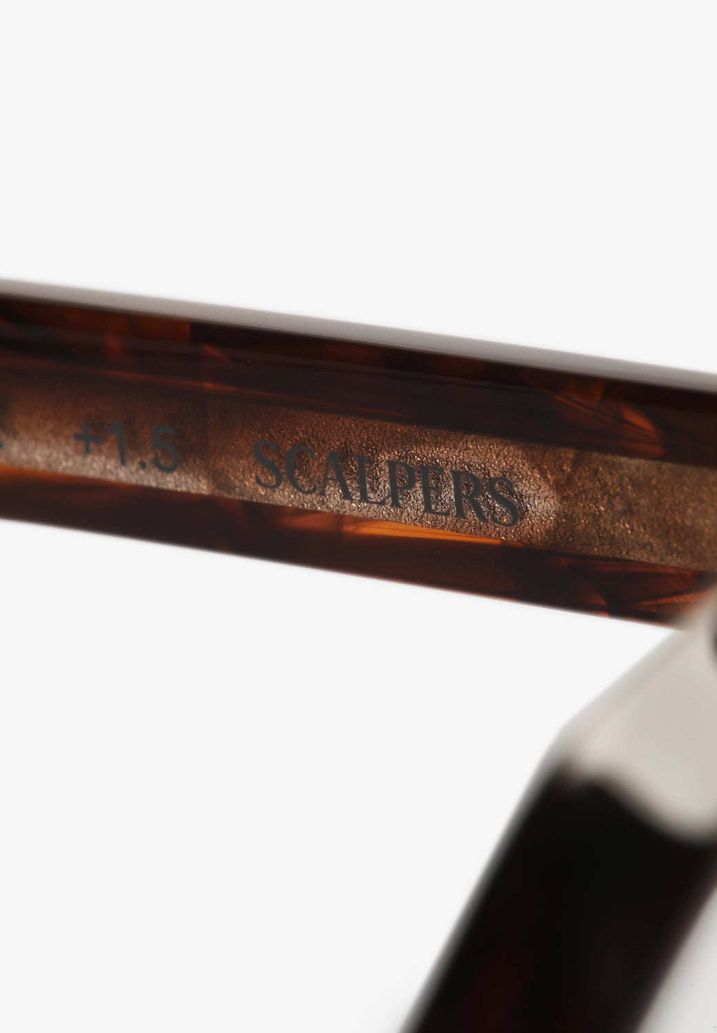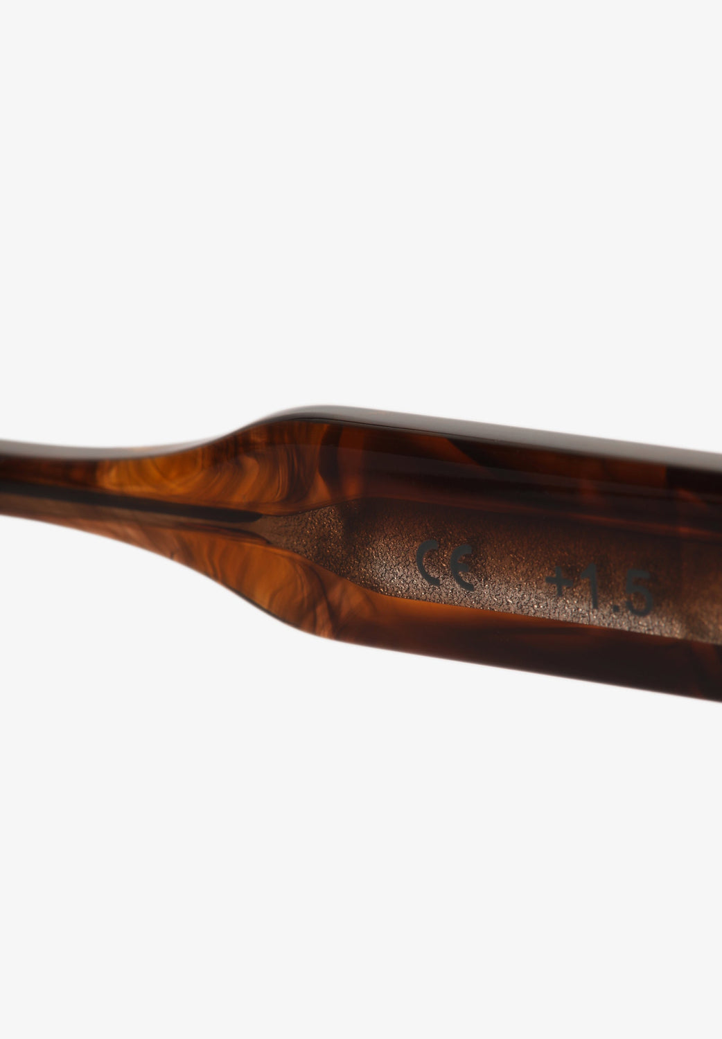 Óculos redondos em acetato, ponte em forma de fechadura. Cor Havana. Lentes transparentes graduadas.