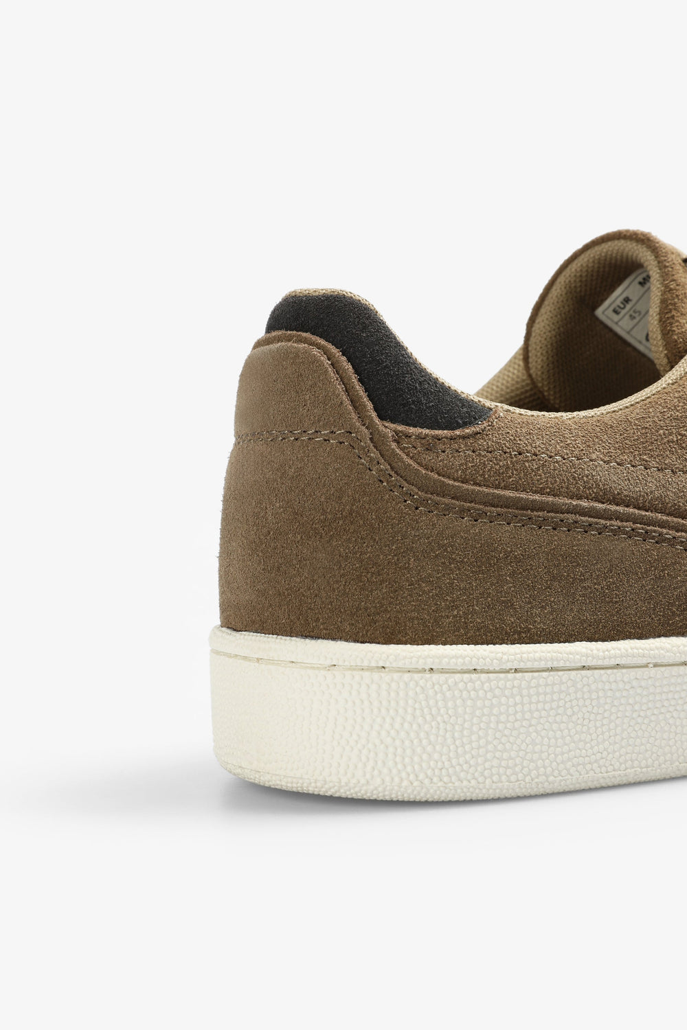 Sapatilhas confecionadas em pele terminada em croute. Fecho com cordões no tom, sola de borracha em contraste e remendo de skull lateral.