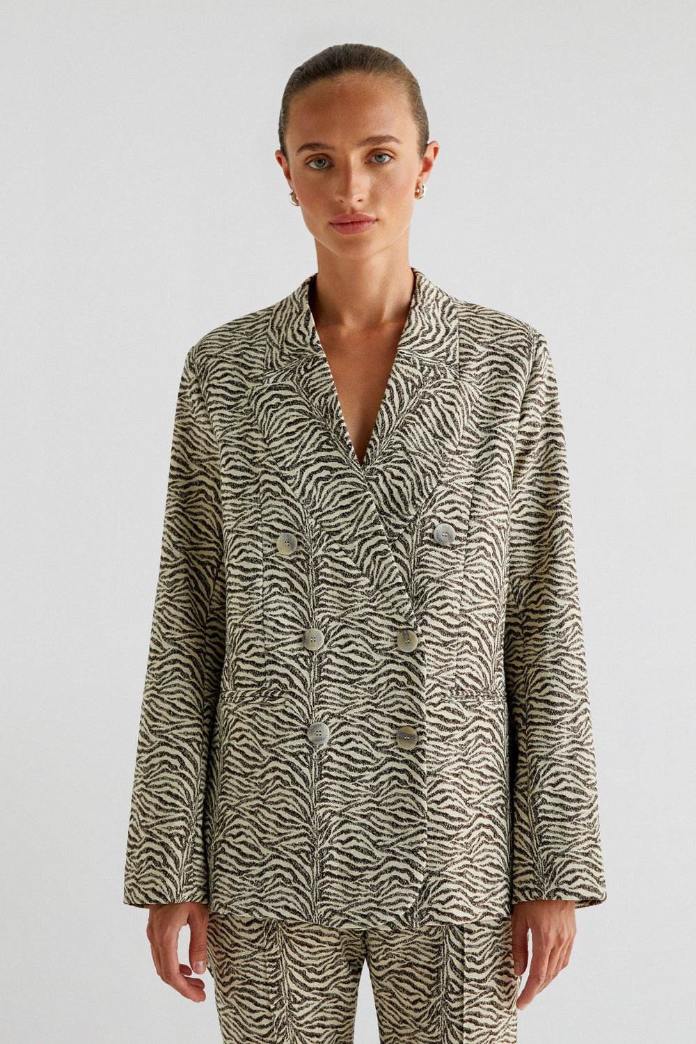 Blazer com padrão de zebra confecionado em mistura de algodão. Regular fit, gola com lapelas e fecho com botões. Manga comprida.