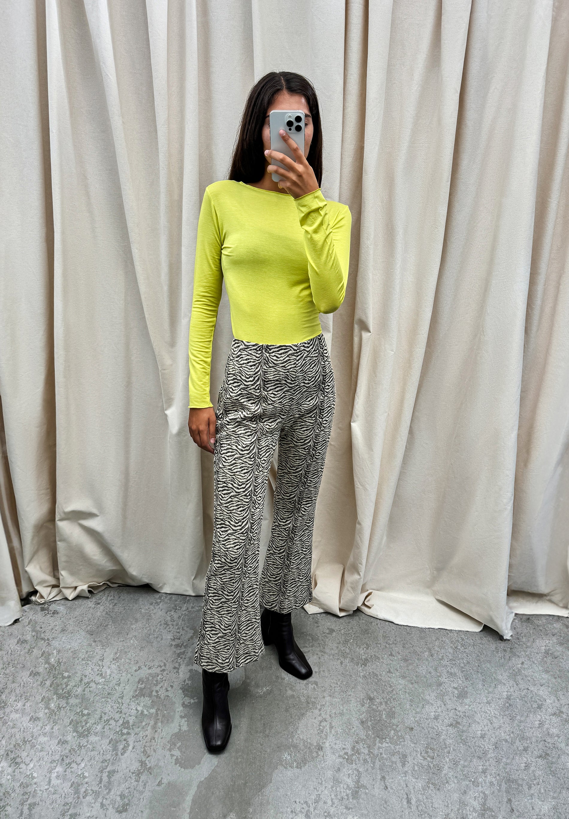 CALÇAS BOCA DE SINO COM ESTAMPADO ANIMAL