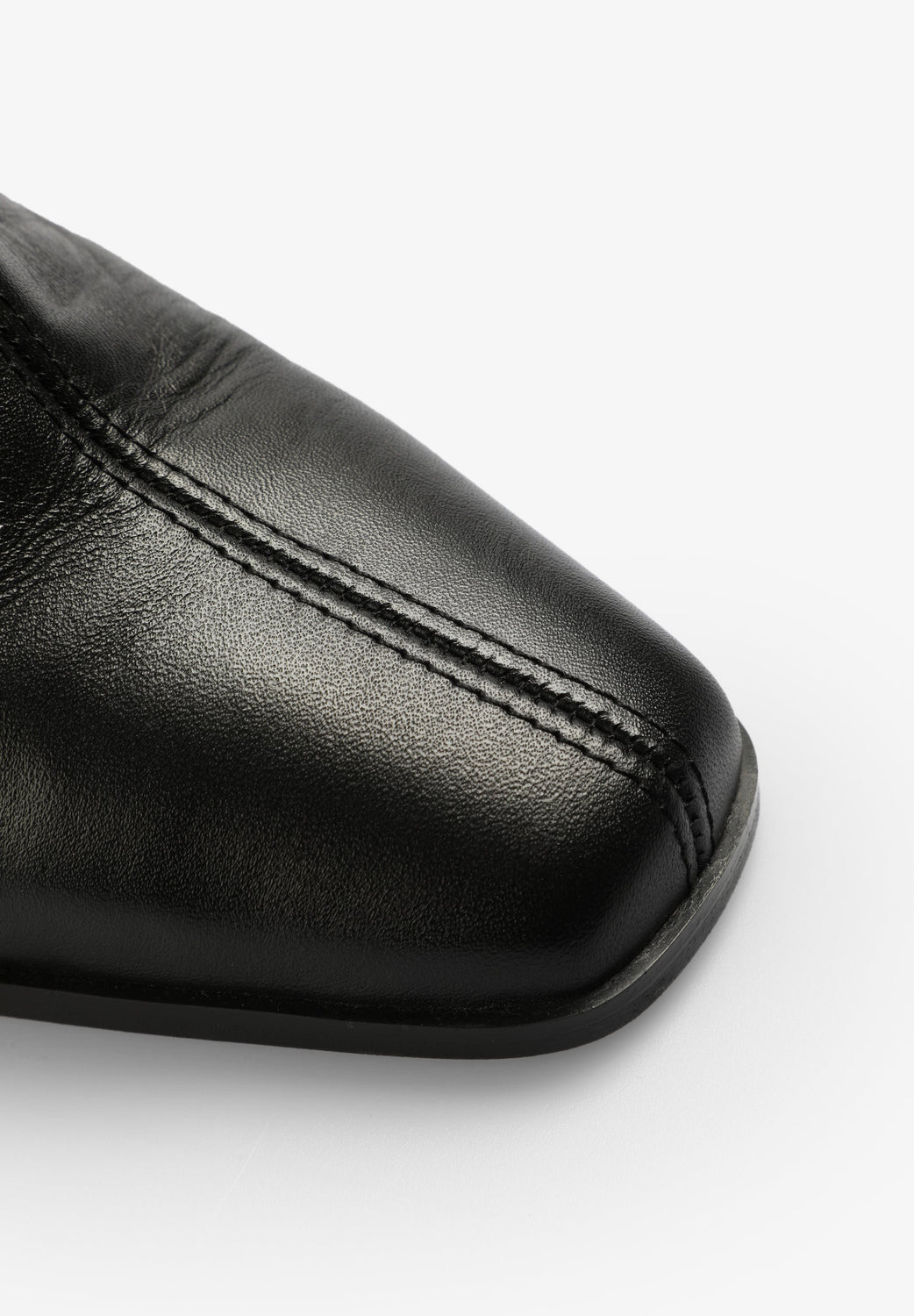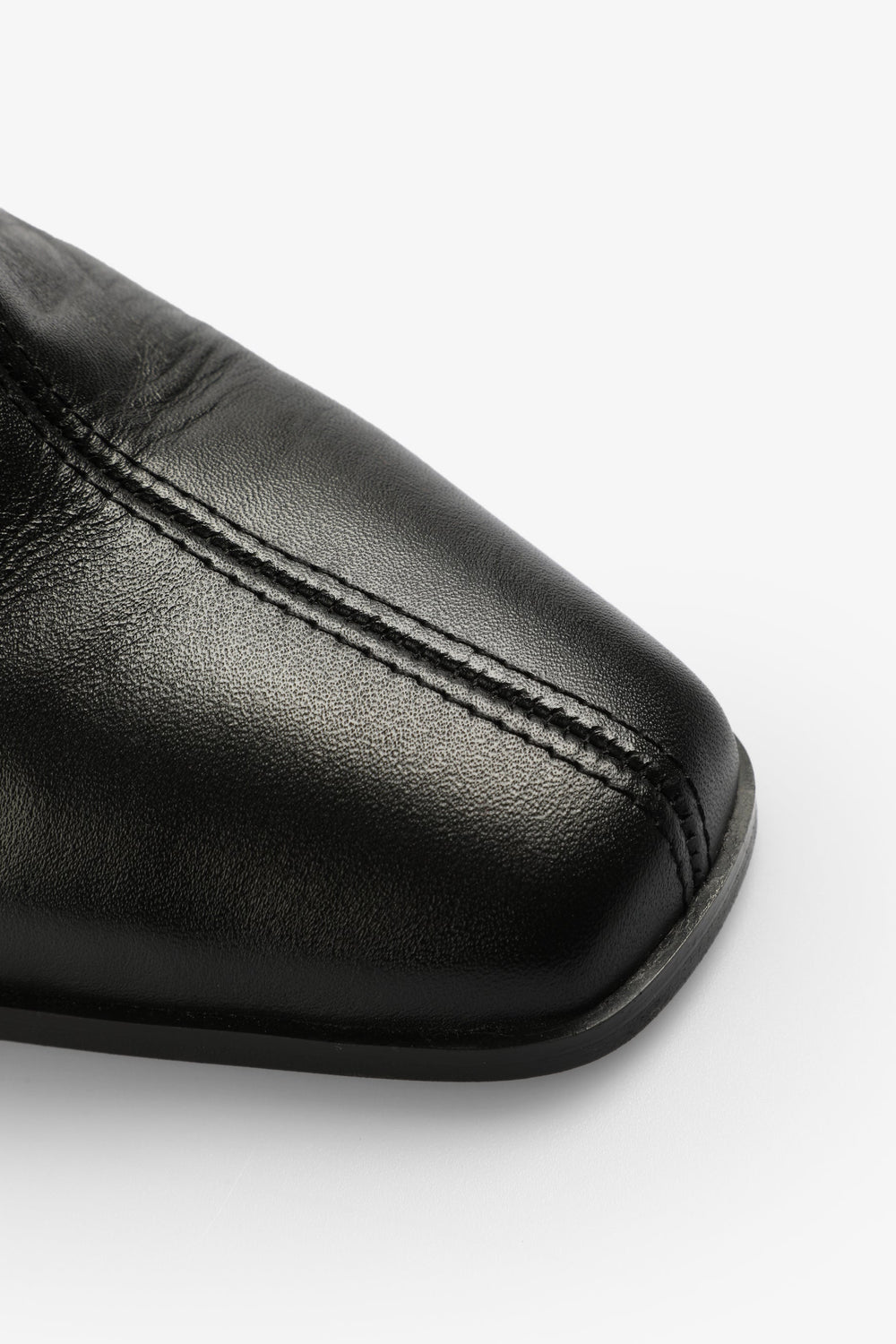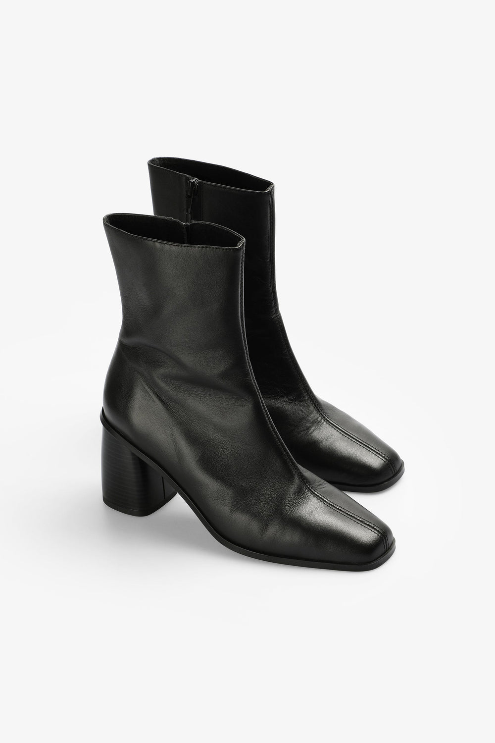 Botim confecionado em 100% pele soft. Cano midi estreito e fecho com zip lateral. Tacão: 7,5 cm.