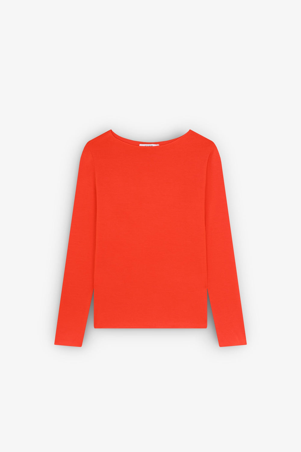 T-shirt básica flúor. Corte Slim Fit. Manga comprida. Tecido ligeiramente elástico. Decote caixa.