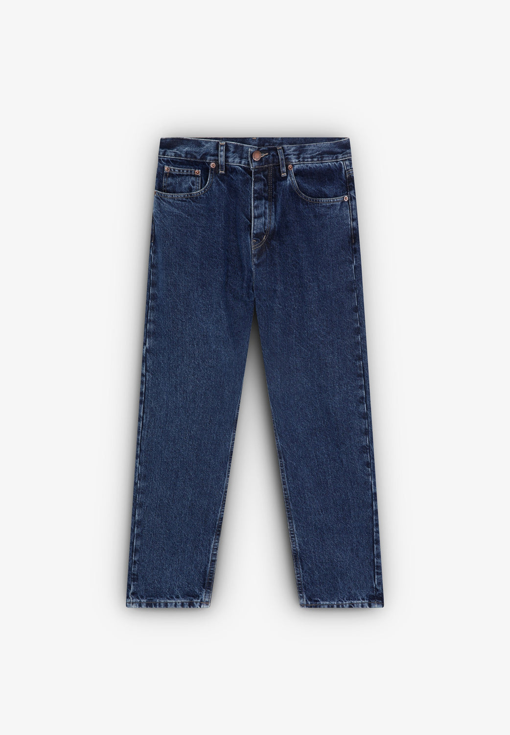 Jeans confecionados em tecido ligeiramente elástico. Corte cropped, fecho com botão e zip e bolsos laterais e traseiros. Presilhas na cintura.