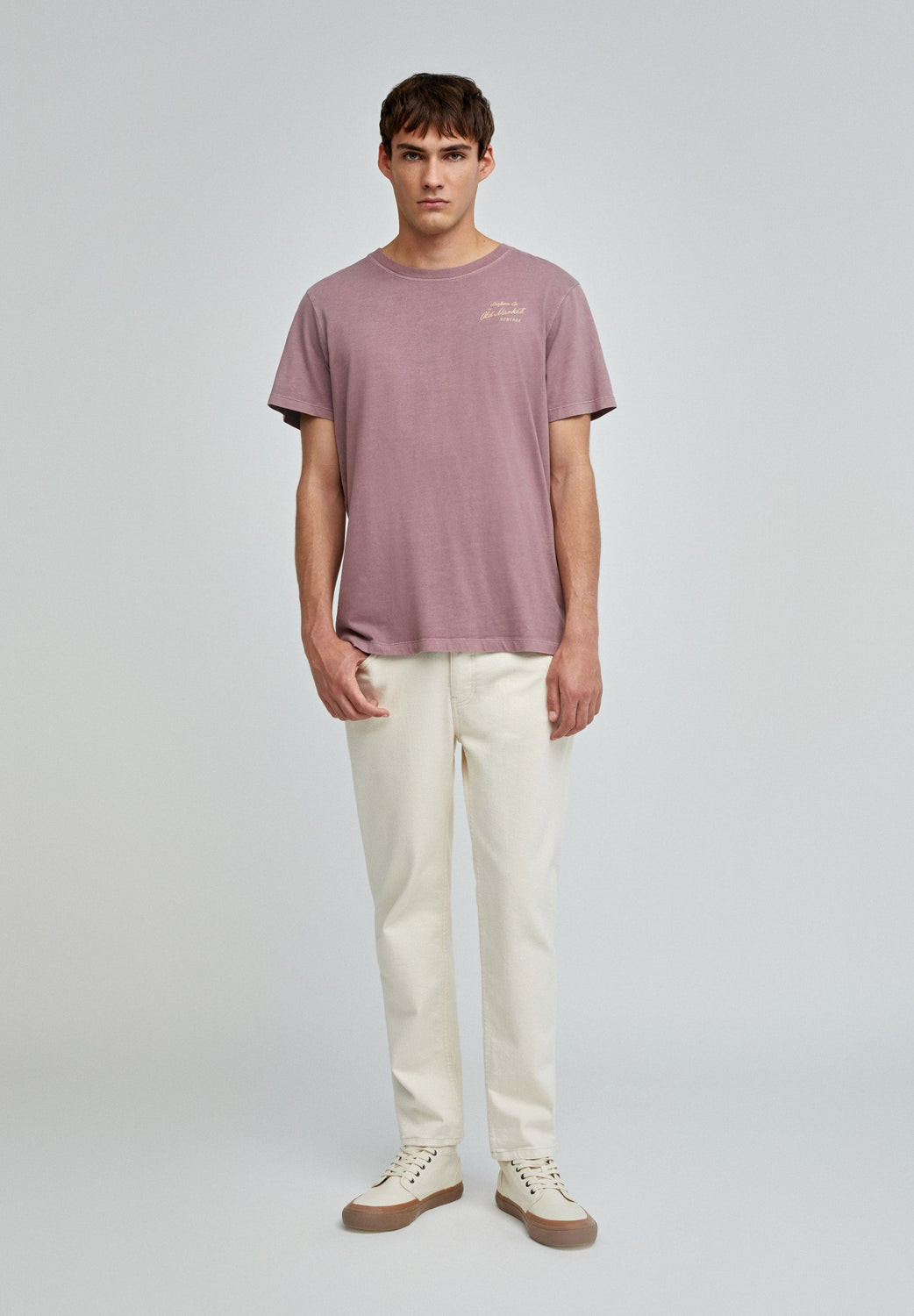 T-shirt confecionada em 100% algodão BCI. Regular fit, decote redondo e manga curta. Padrão atrás e no peito.