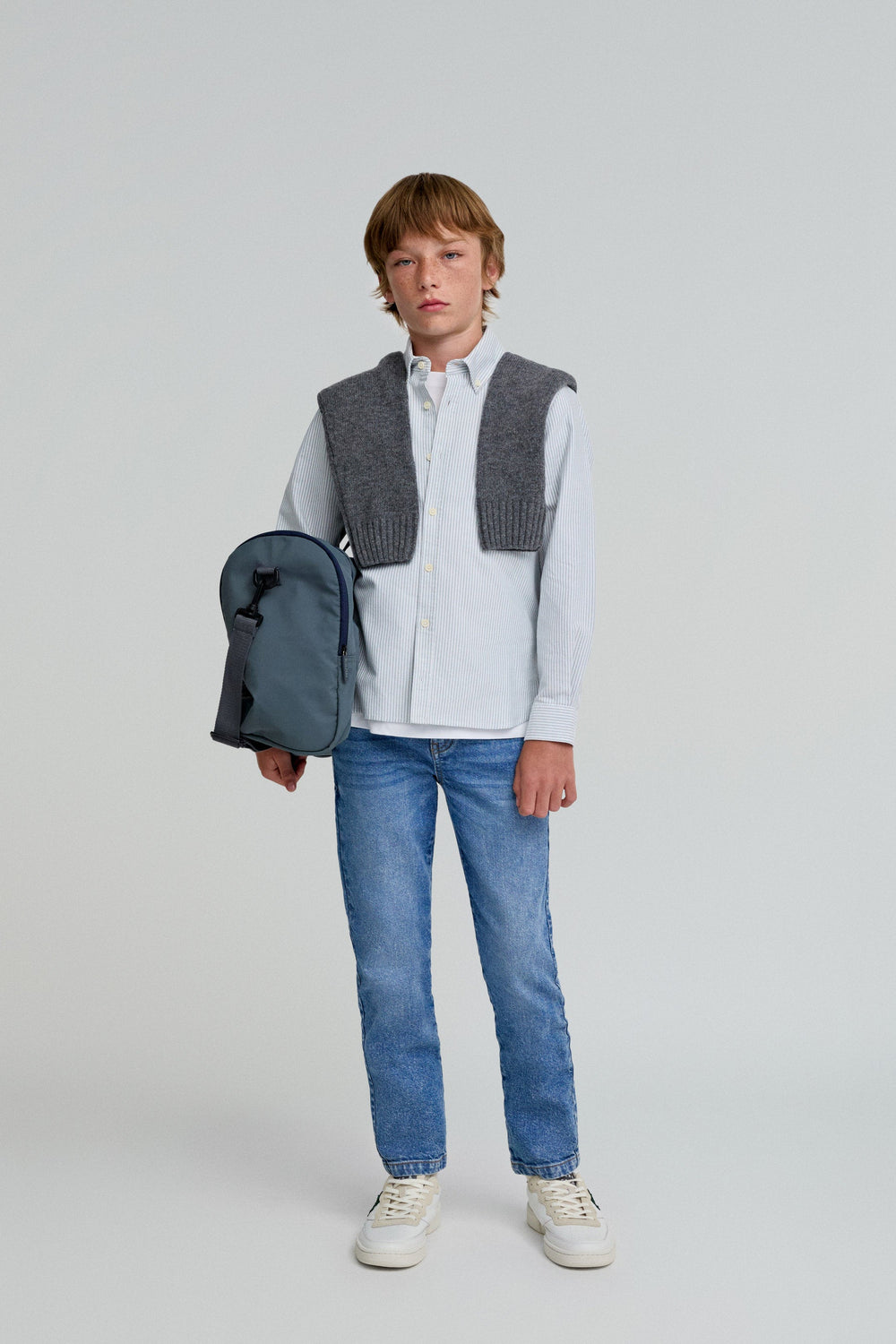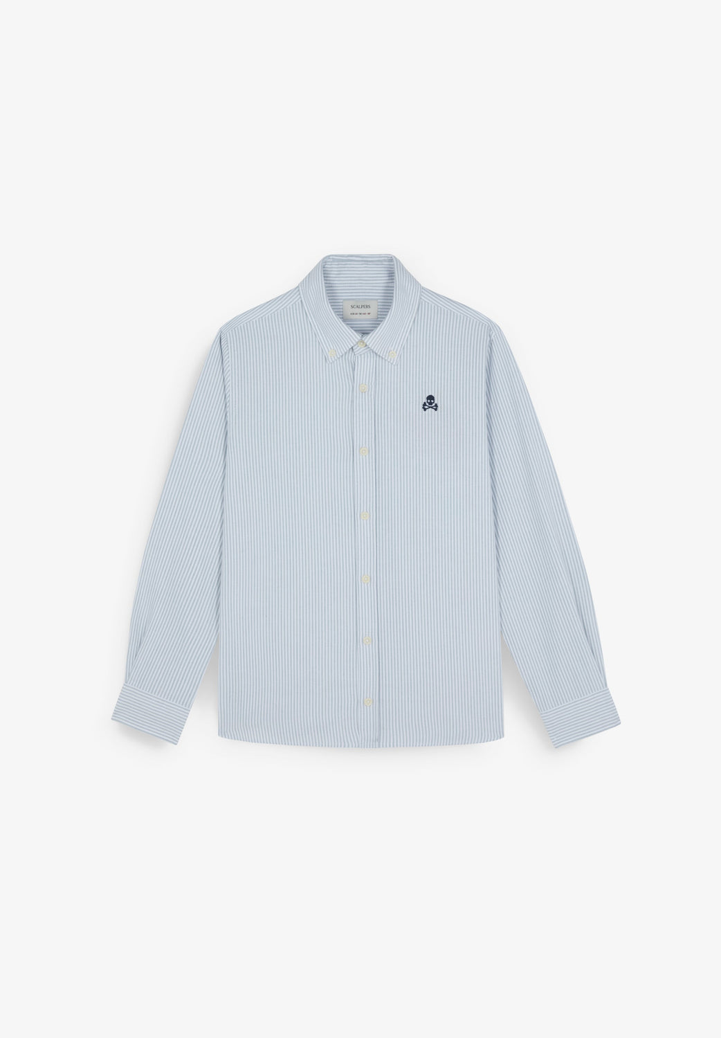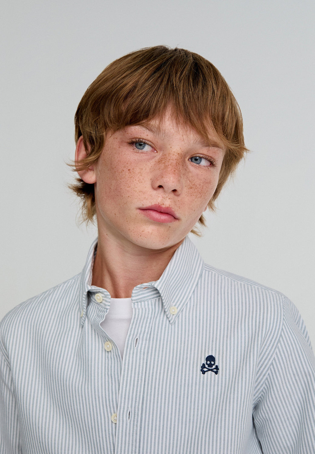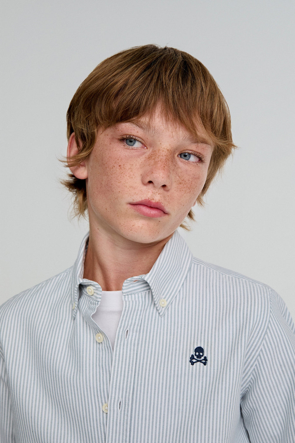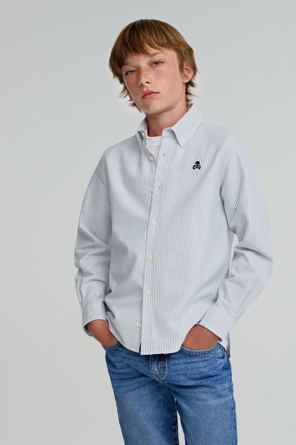 Camisa oxford com estampado de riscas. Confeção em 100% algodão. Corte Regular Fit. Decote com botões. Manga comprida terminada em punho. Logótipo bordado a contrastar.