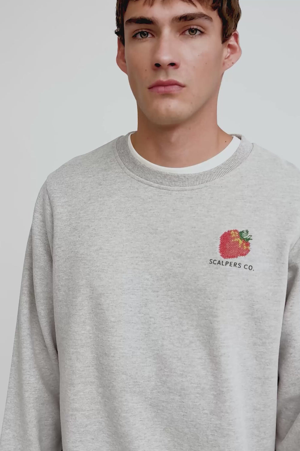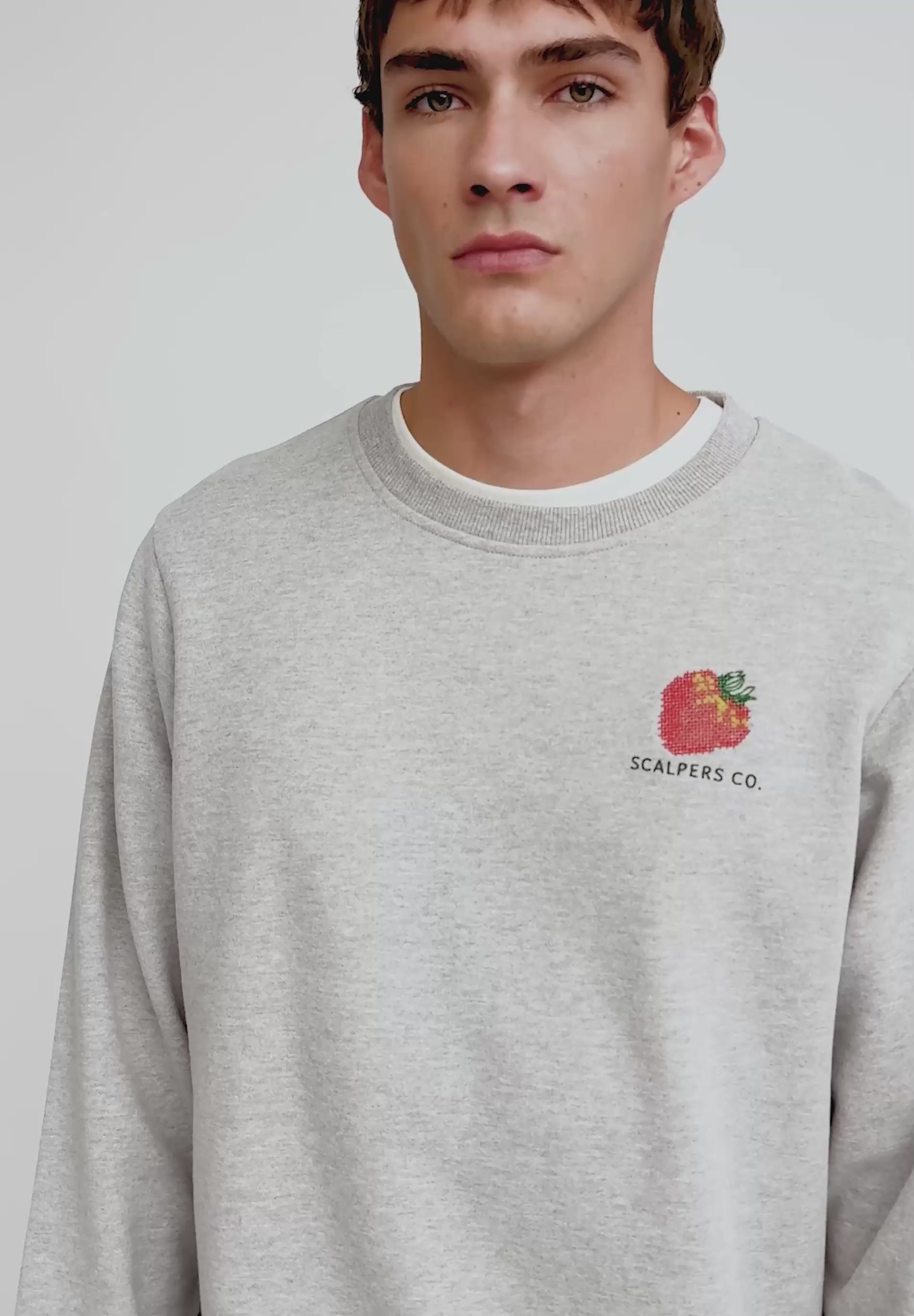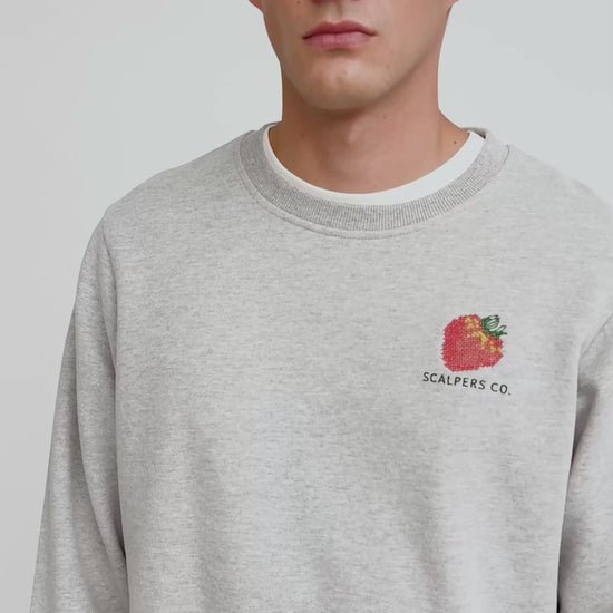 Sweatshirt confecionada em 100% algodão BCI. Regular fit, decote redondo e manga comprida. Bordado traseiro de frutas e padrão. Bordado à frente.